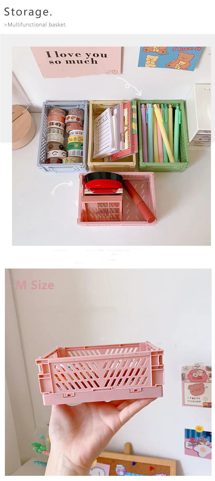 Мини складная пластиковая коробка для хранения Студенческая домашняя офисная настольная корзина для хранения Косметическая лента канцелярский контейнер для организации