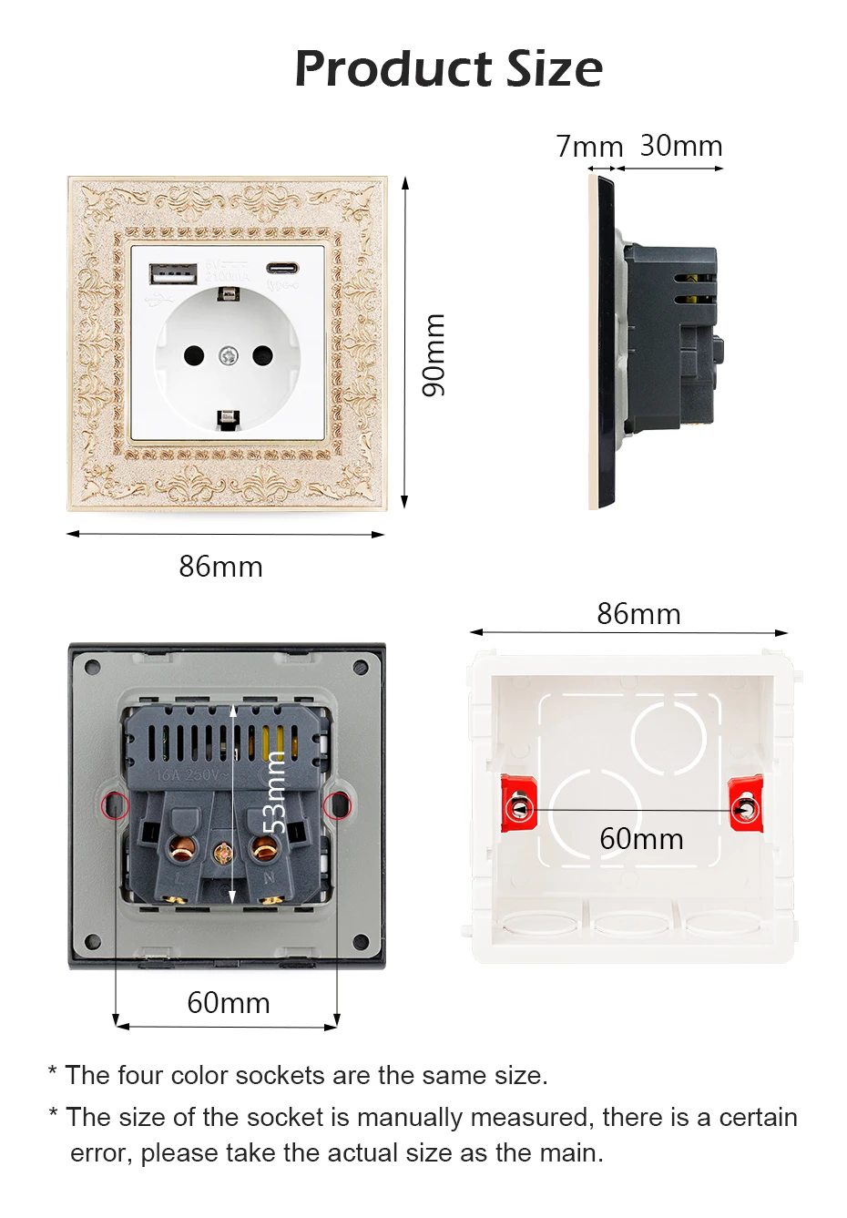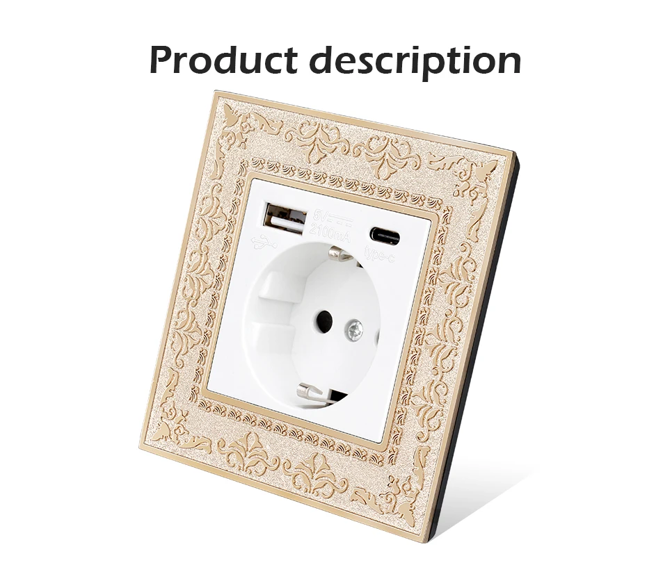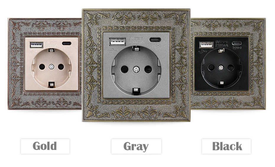 UNKAS Тип C порт 16A штепсельная вилка европейского стандарта 5 в 2100ма с USB разъемом 4D тиснение Ретро цинковый сплав панель из нержавеющей стали мощность AC 110 В-250 В