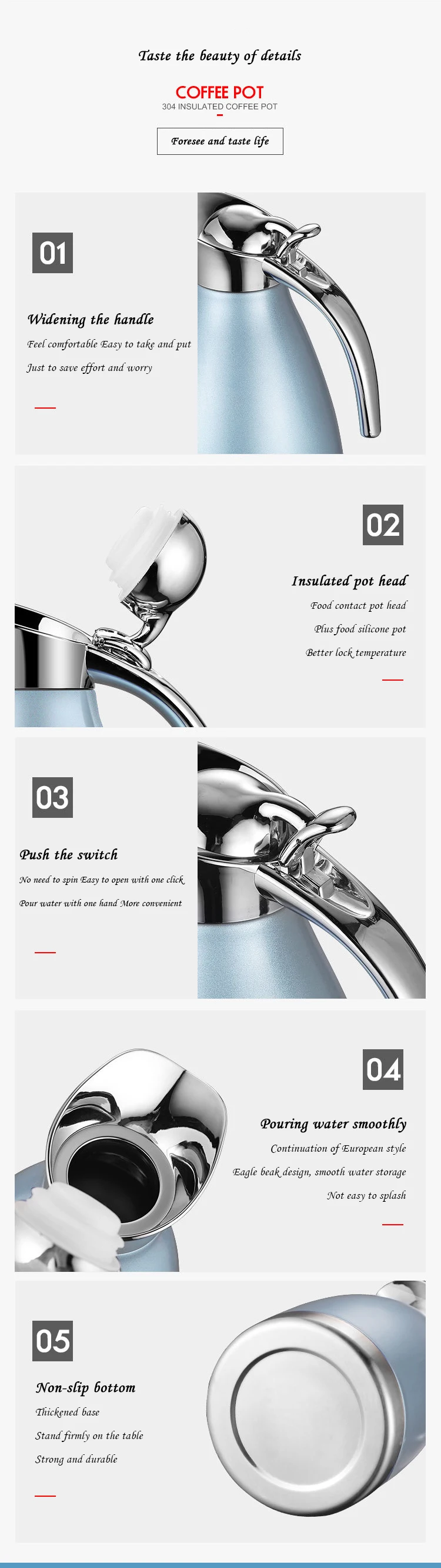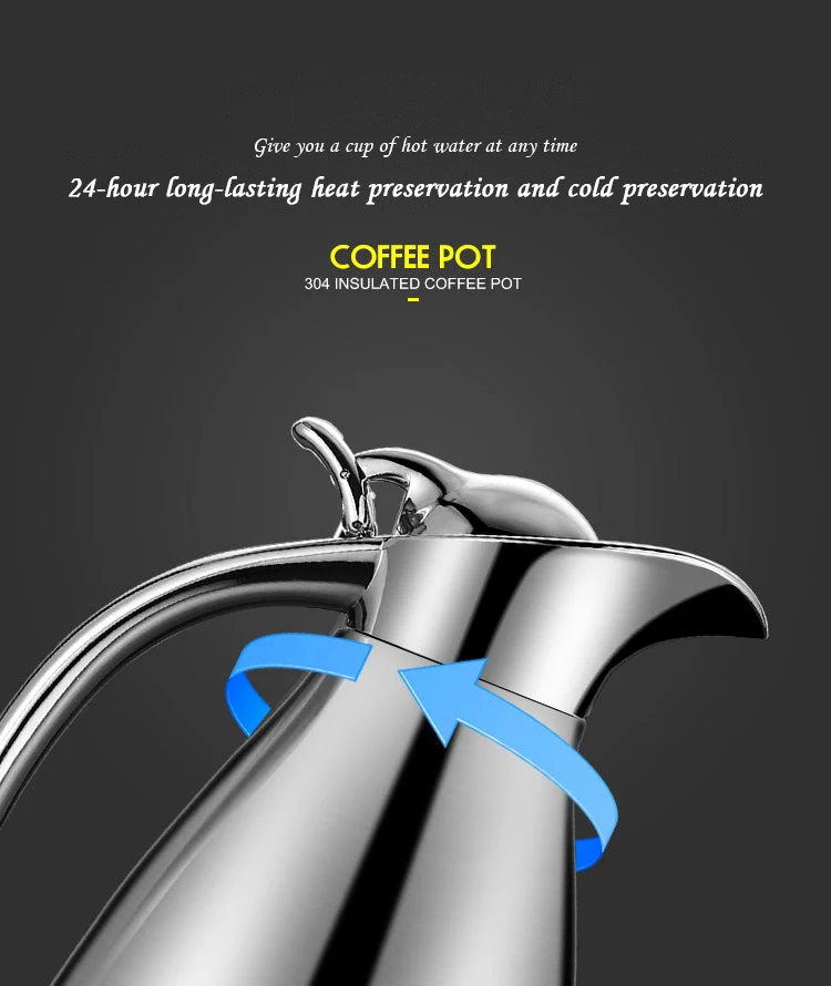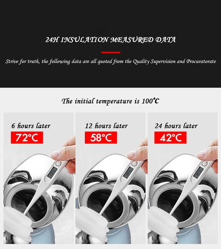 Тип вакуума: (корпус чайника состоит из двухслойной нержавеющей стали и пылесоса) длительное сохранение тепла в течение 24 часов, длительное сохранение холода