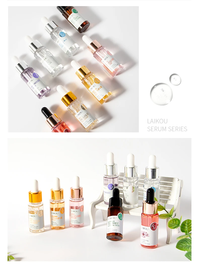 Natural facial Serum 8 24K golden snail Serum, Cherry blossom Serum, Vitamin Serum, Hyaluronic acid Serum, Blueberry Serum, Rose Serum, Tea tree Serum, Nicotinamide Serum.