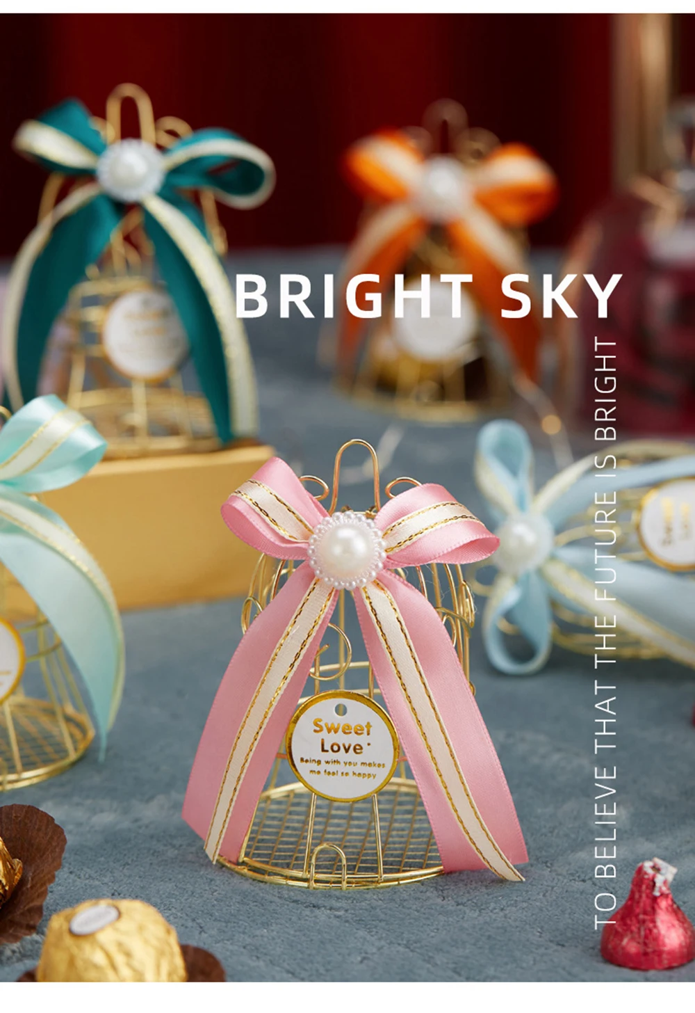 Мини-металлическая Золотая жестяная клетка для птиц, конфетные коробки для детского душа, Подарочная коробка для гостей, свадебные подарки, вечерние сувенир на день рождения