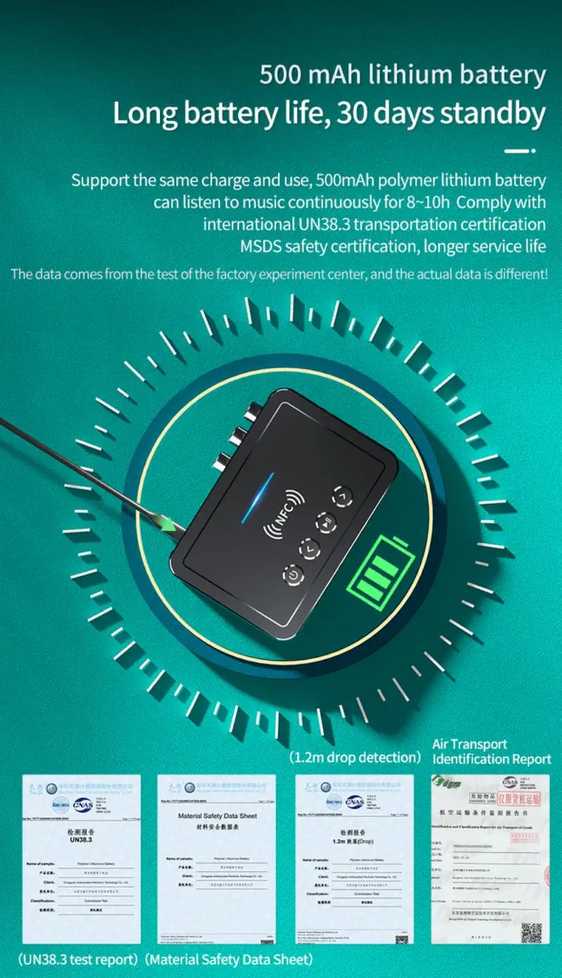 ◆ Встроенный перезаряжаемый литиевый аккумулятор емкостью 500 мАч, длительный срок службы батареи.