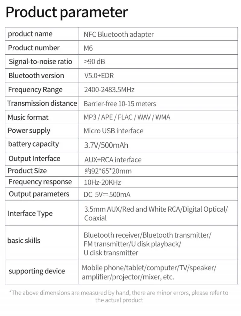 Совместимые устройства: мобильные телефоны и планшеты системы Android, IOS, проводные колонки, усилители мощности, а также Bluetooth-колонки или наушники, которые поддерживают A2DP/протокол, подключены для использования.