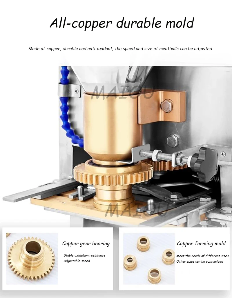 1. This meat ball machine is made of stainless steel .