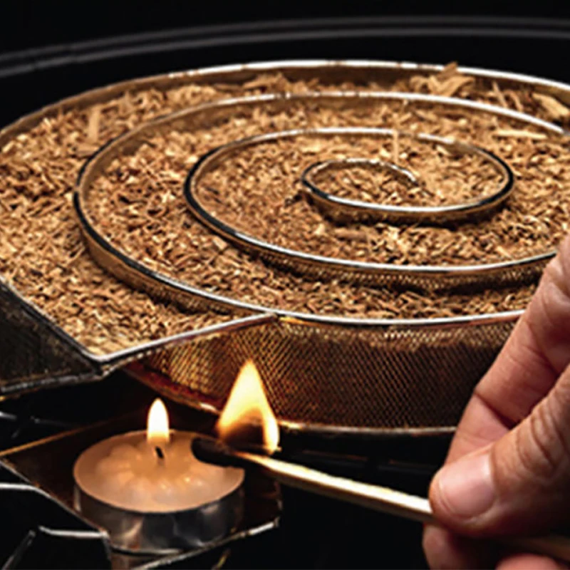 3. Этот стиль курения дымового генератора выглядит как лабиринт. В сущности Вы заполняете сетчатый канал деревянной стружкой, светильник чайный светильник Свеча на внешнем конце, который в свою очередь получает древесную стружку