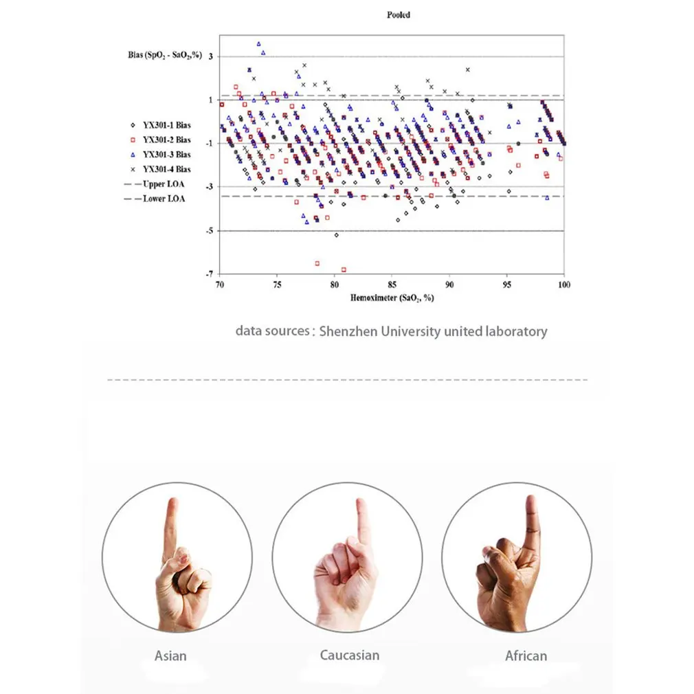 Простота в использовании: Легкий и компактный, подходит для широкого диапазона размеров пальцев, результат будет показан на экране.