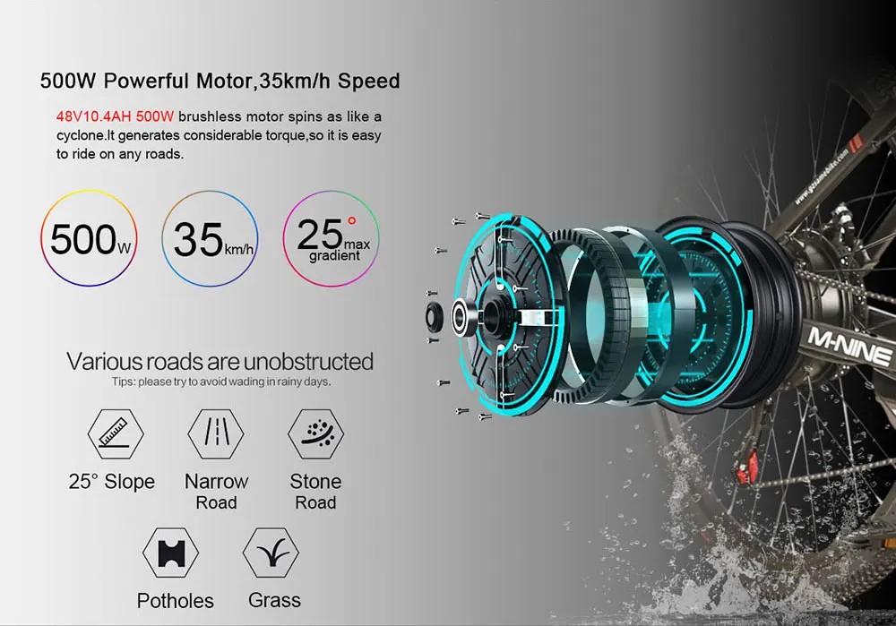 ● Le moteur de 500W fournit la vitesse maximale de 30 км/ч и le dégradé maximum de 30 degrés