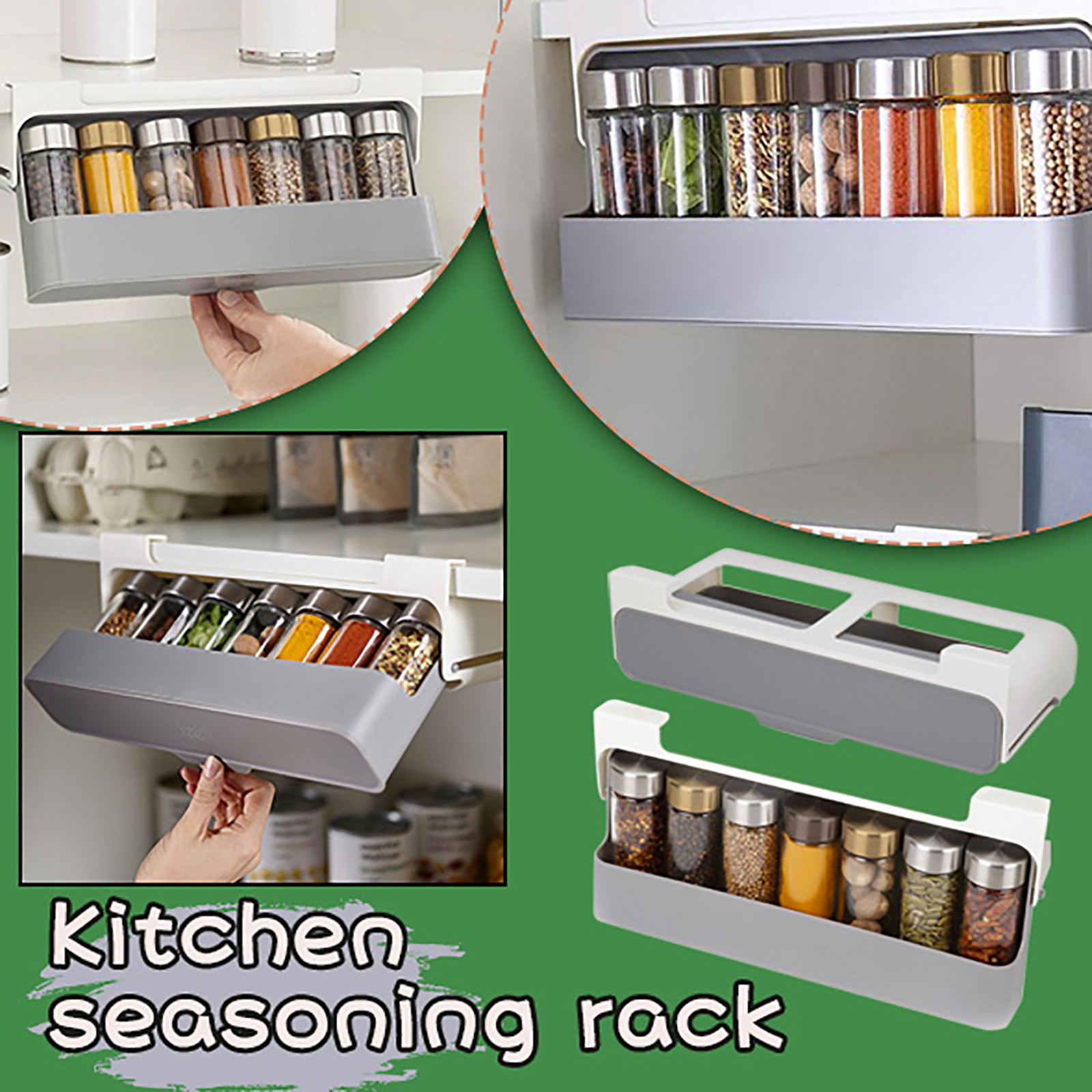 Организуйте специи до совершенства, экономяПоКухонное пространство с этой сделанной на заказ стойкой для хранения. Благодаря простой установке под полкой и удобному выдвижной отсек этот уникальный органайзер для специй легко крепится к большинству существующих полок. Его легко открыть и закрыть, и ящик будет наклоняться под определенным углом при открытии, что позволяет легко взять баночку для специй. Этот креативный органайзер для шкафа для специй не занимает ограниченное пространство для кухни.Спецификация: