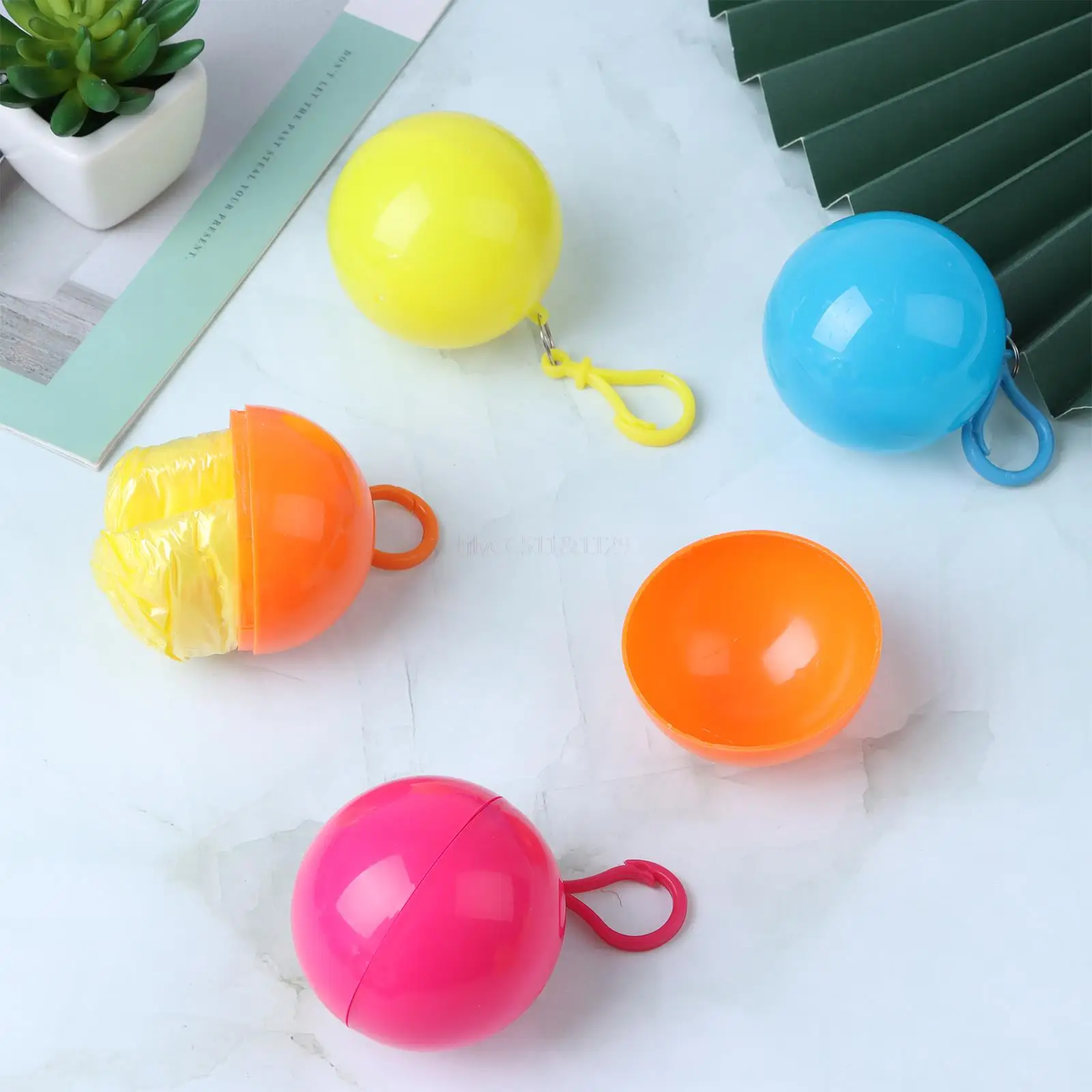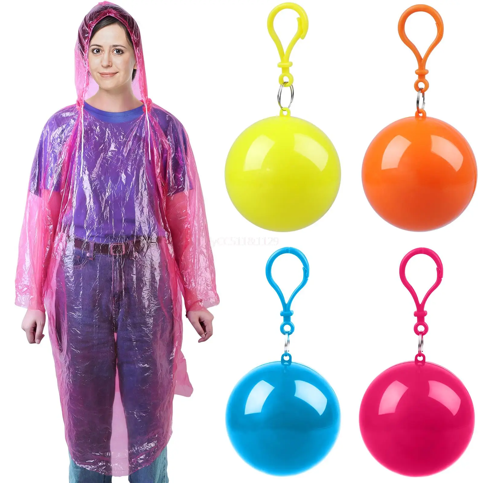 Мяч от дождевика: Вы получите 2 одноразовых складного дождевика, упакованного в пластиковый плащ брелок для ключей шар, который удобен для переноски и реагирования на чрезвычайные ситуации.