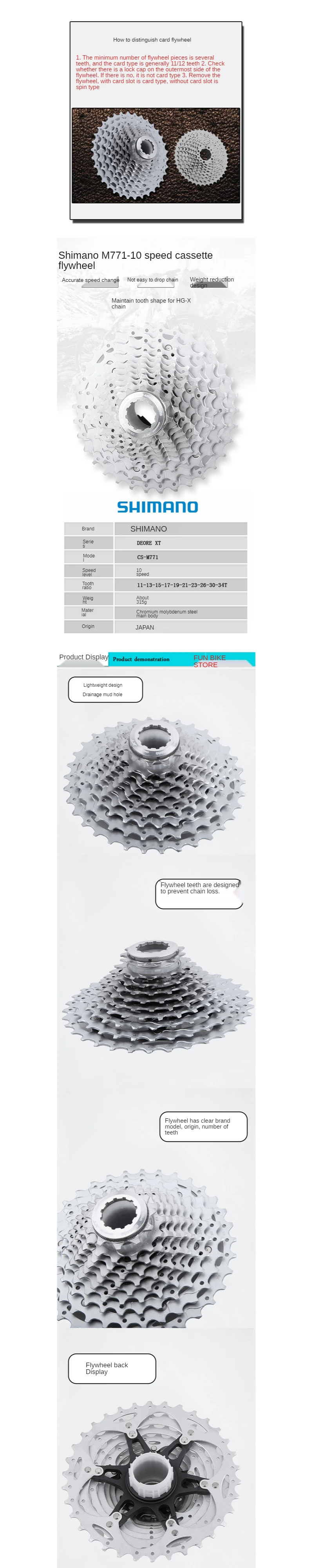 SHIMANO DEORE имеет стальной паук и Рафинированный зубной профиль для HG-X цепи и Шимано тени задних переключателей. Он обеспечивает точную и последовательную производительность переключения между широким спектром условий MTB.