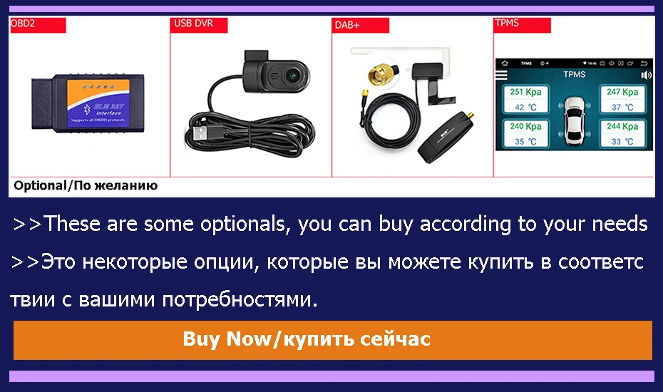 > Rohm 32107 <ограничено некоторыми моделями>-это мощный чип DSP, который позволяет вам иметь больше энергии для управления звуком различных частот. Вы можете контролировать время воспроизведения четырех динамиков автомобиля. Это ощущение окружения дает вам более продвинутые слуховые удовольствия.> Изображение на картинке/Минимизируйте видеопроигрыватель по умолчанию и смотрите видео при использовании navagation,browser и т. д.> FM/AM/RDS радио/1. Функция автоматического или ручного поиска станции./2.AM/ FM радио (AM 2 полосы, FM 3 полосы).> Совместимость с Bluetooth 5,0/1. Встроенный Bluetooth-совместим для звонков без рук./2. Функция телефонной книги (доступна для мобильных устройств с поддержкой Bluetooth-совместимых контактов)./3.можно подключить ваш телефон и наш ключ OBD одновременно./4.A2DP Bluetooth-совместимая музыка (доступна для мобильной поддержки Bluetooth аудиовыхода)./5.не поддерживается: передача файлов.> Крутая 3D навигация/1. Встроенный GPS, более сильный gps-сигнал./2. Карта может работать с фоном для достижения функций музыкальной навигации. 3. Поддержка функции двойной зоны GPS, пассажиры могут продолжать воспроизводить мультимедиа во время вождения navigating.4. Поддержка карт: g oogle/here/sygic/tom/waze/i go/Navitel/Yandex, и так далее/5. Предварительно Установите автономную карту внутри радиовспышки, если у нас нет карты вашей страны, мы оставим вам сообщение.> Управление рулевым колесом/Удаленный Адаптер рулевого колеса готов безопасно контролировать вашу музыку на ходу, с этой функцией, вы можете пристально фокусироваться прямо впереди, что сделает вождение более безопасным.> Мультимедийная функция/Поддержка 48 эквалайзеров <ограничено некоторыми моделями> для музыки, видео-дисплея альбома, названия песен, имени певца, лирической информации от игрока по умолчанию. Поддержка видео full HD 1080P пикселей./Поддержка формата Мультимедиа: MP3, VMA,MPEG1/2/4,JPEG,DVIX,CD-DA,CD-текст./Поддержка воспроизведения памяти точки останова./Поддержка музыкальных форматов без потерь.> Поддержка OBD2/вы можете подключить bluetooth-совместимый сканер OBD2 для использования этой функции.> Поддержка AHD камеры заднего вида. Подарок на обратную камеру бесплатно.> Поддержка DAB +/1. Подключите с DAB + Box через порт USB для использования функции DAB +./2. Поддержка ввода цифровых радиопрограмм и сенсорного управления./3. Поддержка сенсорного экрана для поиска программ./Советы: не включая DAB + BOX, предлагаем вам купить его у нас.