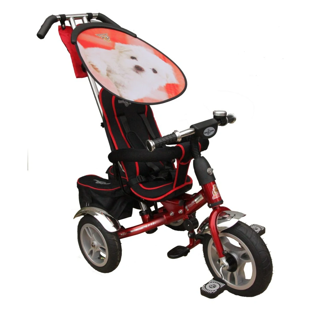 Трехколесный велосипед с управляемой родительской ручкой, которая выдерживает нагрузку 50 кг, что является максимальной нагрузкой для велосипедов с управляемой ручкой.