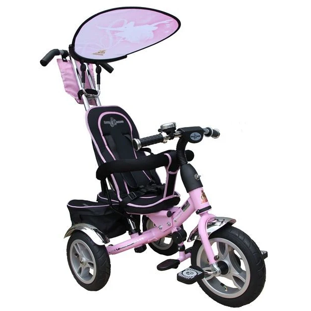 Трехколесный велосипед с управляемой родительской ручкой, которая выдерживает нагрузку 50 кг, что является максимальной нагрузкой для велосипедов с управляемой ручкой.