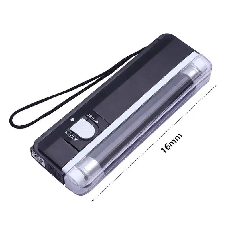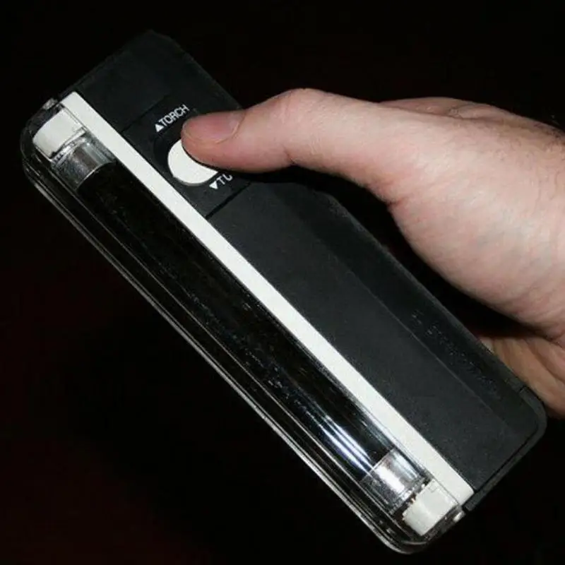1. Push the switch by hand. For the flashlight, push the switch backwards to the UV lamp. The middle is closed.