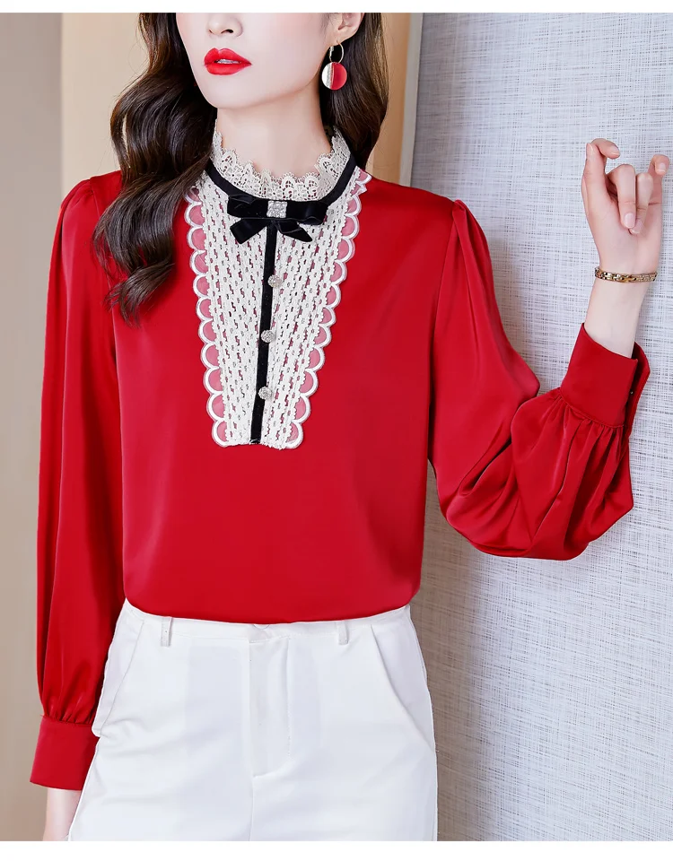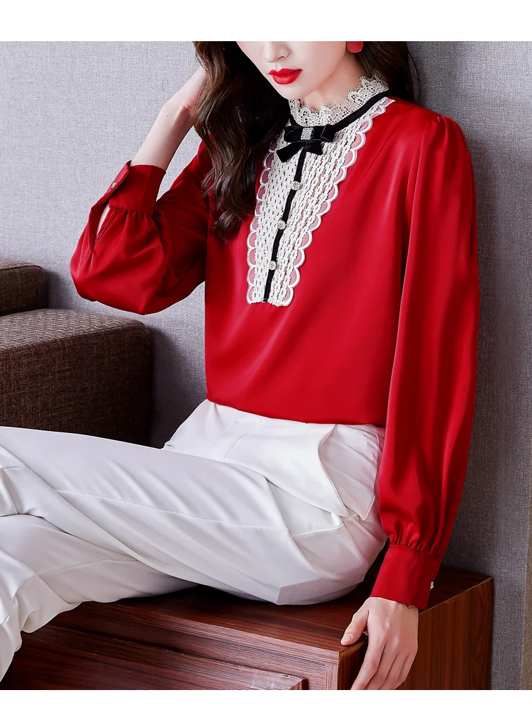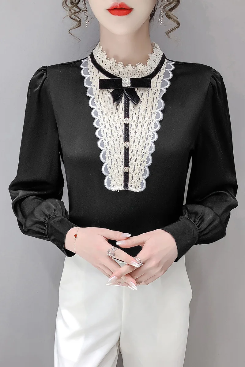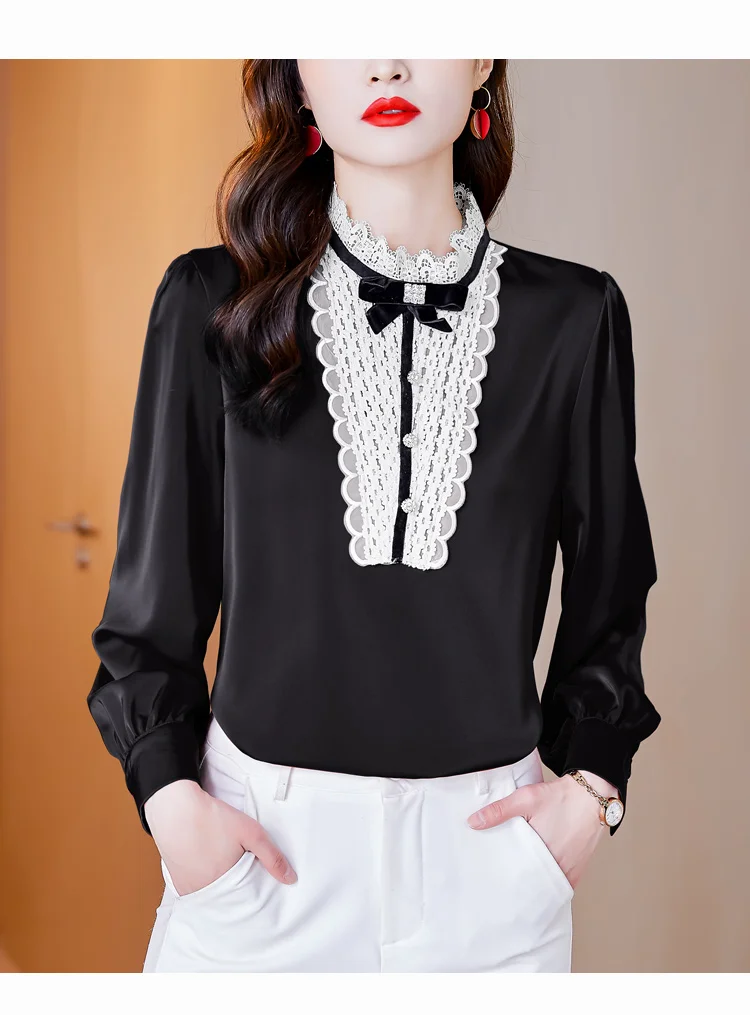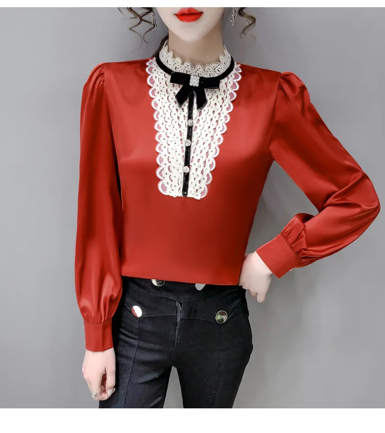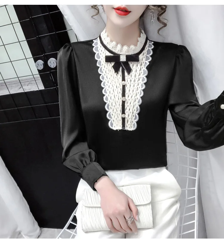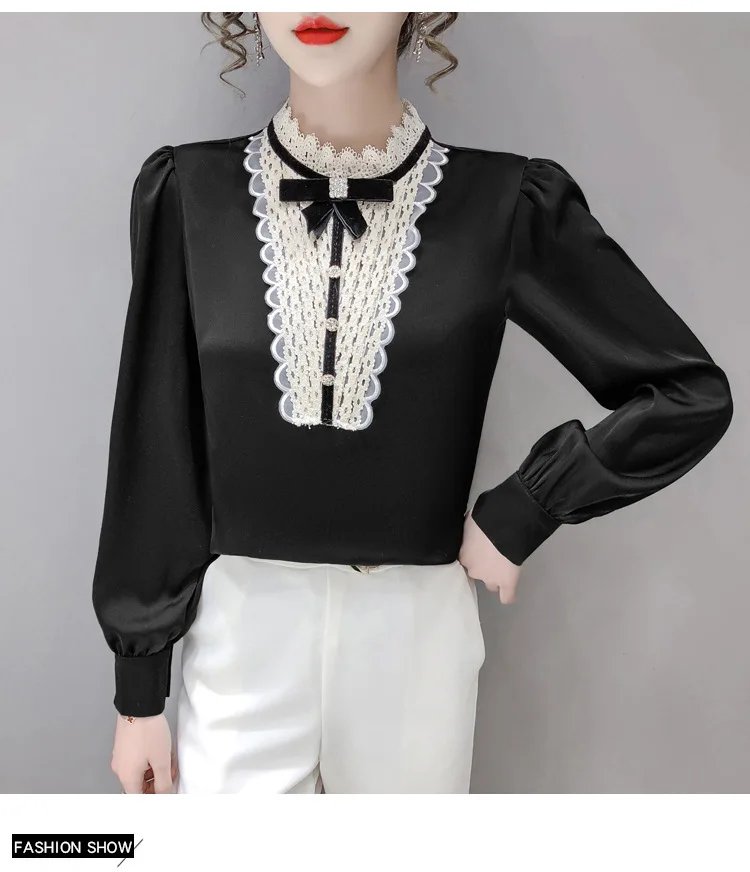 Винтажная средневековая викторианская блузка королевская Дворцовая рубашка в стиле стимпанк, Готическая рубашка с воротником-стойкой, Женский пуловер с бантом, кружевные топы