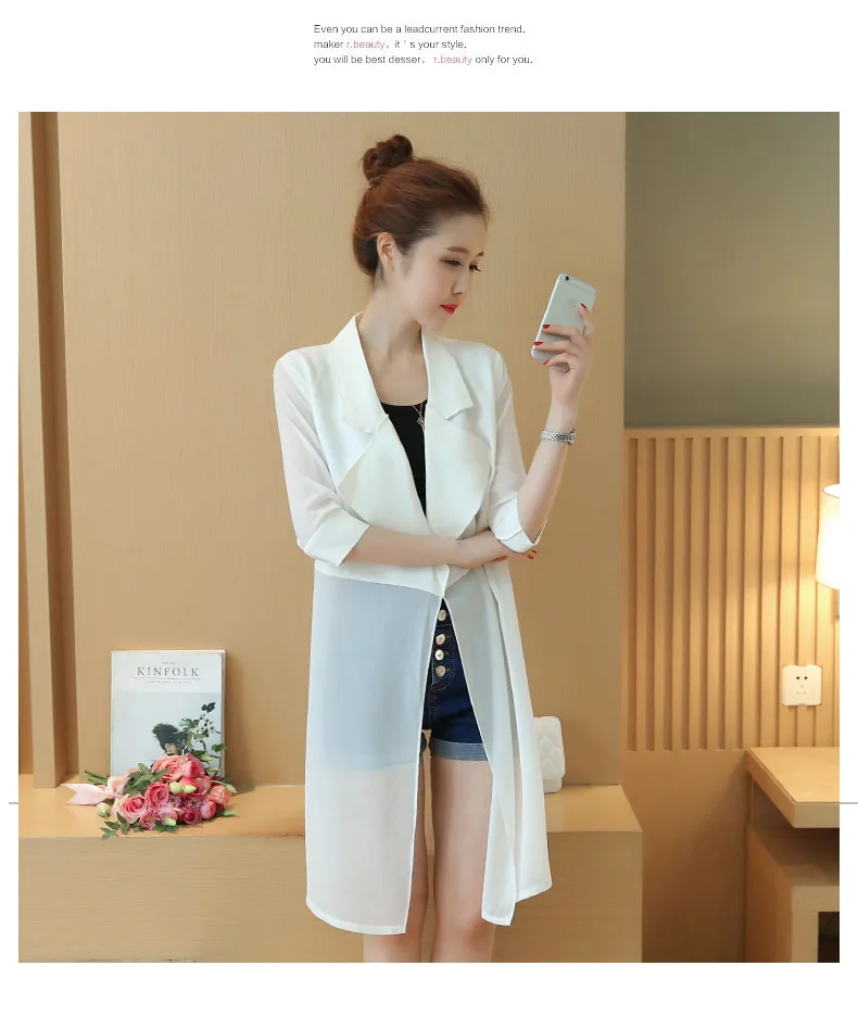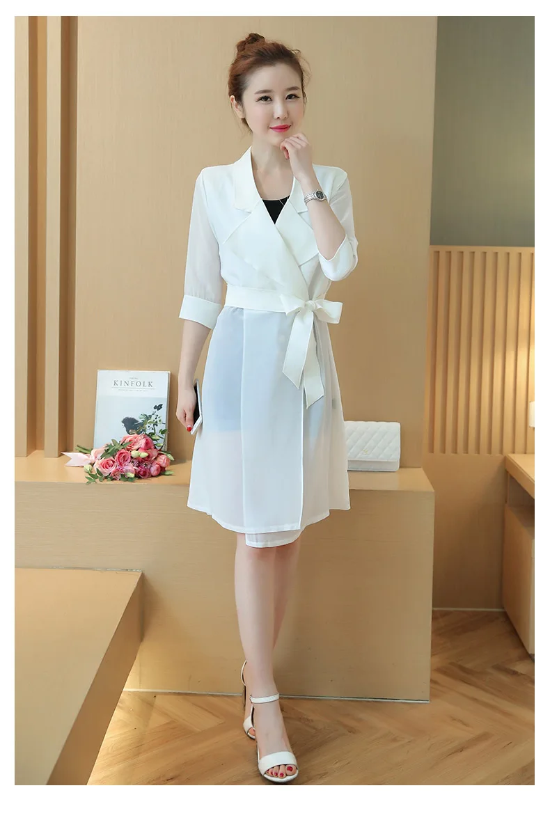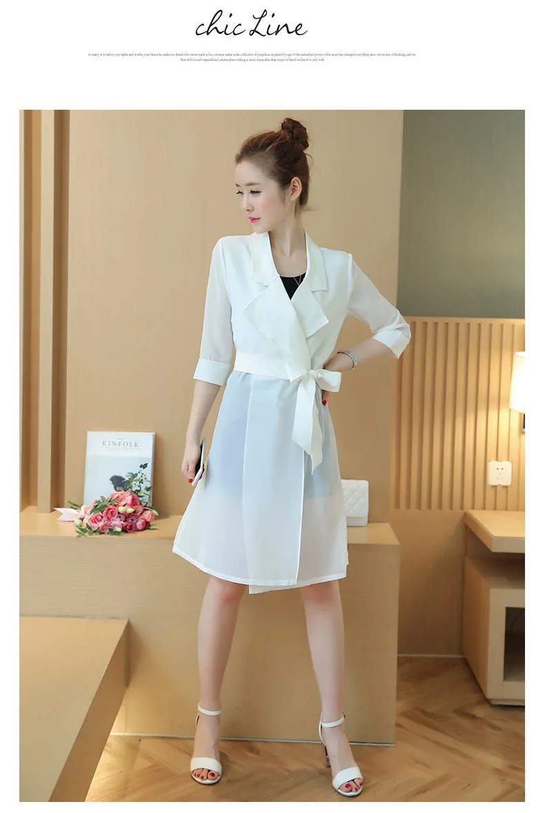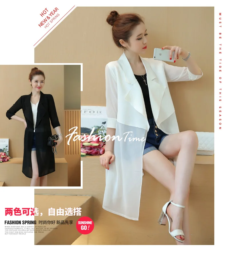 Женский длинный кардиган TingYiLi, черно-белая шифоновая рубашка в стиле пэчворк с поясом, весна-лето