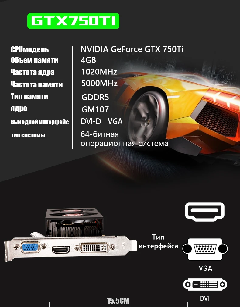 • 100% оригинальный чипсет GTX 750ti