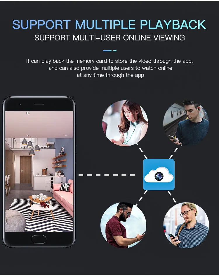 2) Multifunctional camera: Wireless camera is not only portable small, but also comes with all useful features you need in daily life. 100°Wide Angle, Motion Activated Push Alerts, No-Glow IR Night Vision, Recording while Charging, iOS and Android Compatible, Live Stream or Playback from Anywhere, SD Card Recording, One Camera Shared with Multiple Users