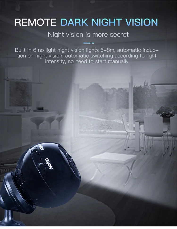 5) The device features covert design of 6 infrared IR lights with non-luminance and 6M night vision distance. You can remotely switch it on/off on the App.