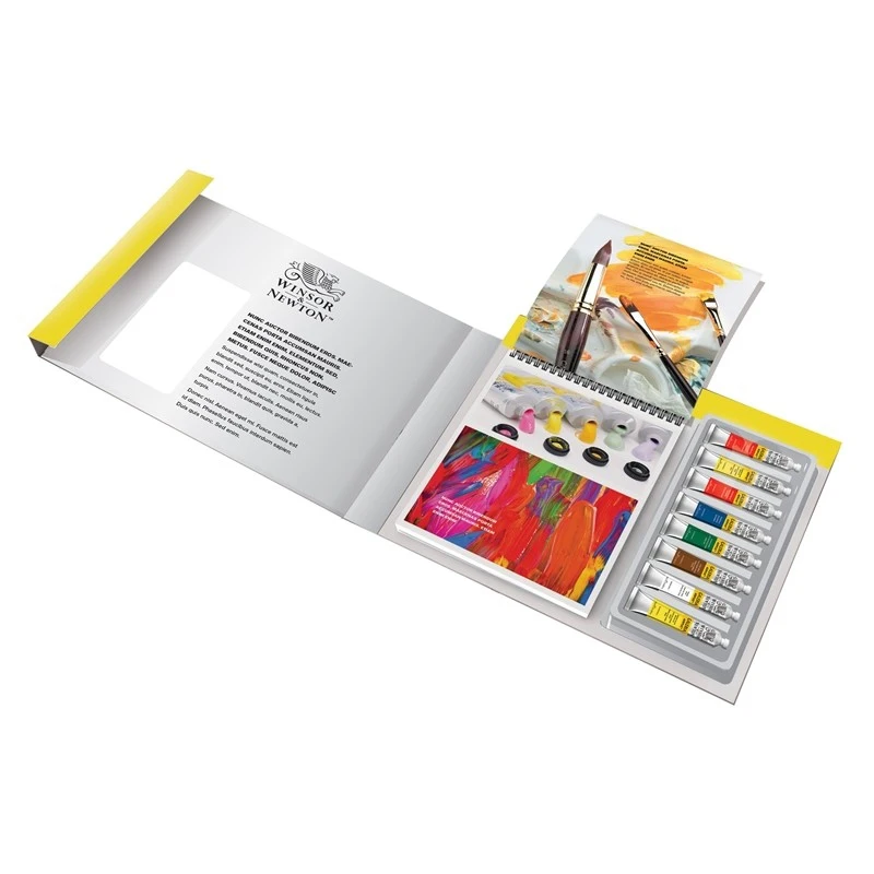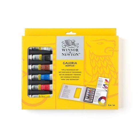 Состав набора: 6 цветов по 15 мл (в тюбиках), кисть "Galeria" №2, подробное описание техники работы с акрилом.