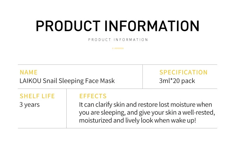 Маска для лица для сна с улиткой: она может очищать кожу и восстанавливать потерю влаги во время сна, а также придает вашей коже приятный, увлажненный и живой вид при пробуждении!