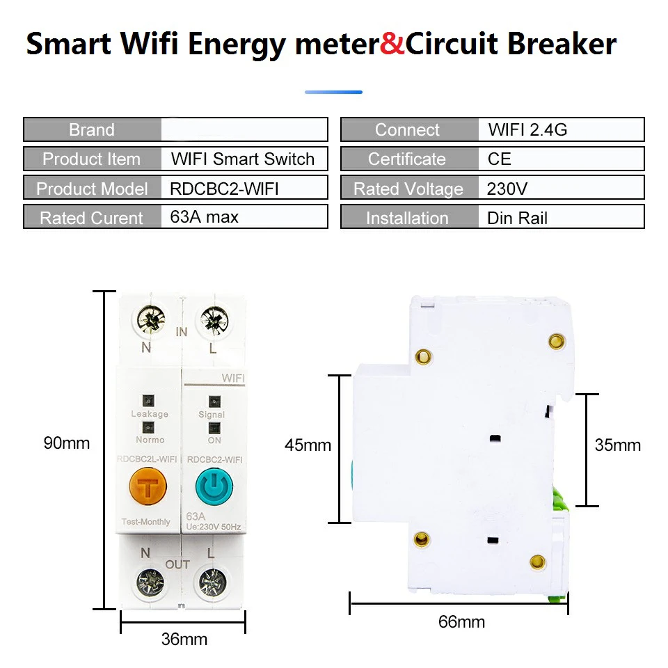 1. WiFi Smart swith и счетчик энергии в основном используются для быстрого отключения источника питания, когда происходит Электрический шок или утечка, для обеспечения личной безопасности и предотвращения электрического удара. Некоторые протекторы утечки также имеют защиту от перегрузки и перенапряжения, которые используются для запуска и остановки двигателя нечасто.
