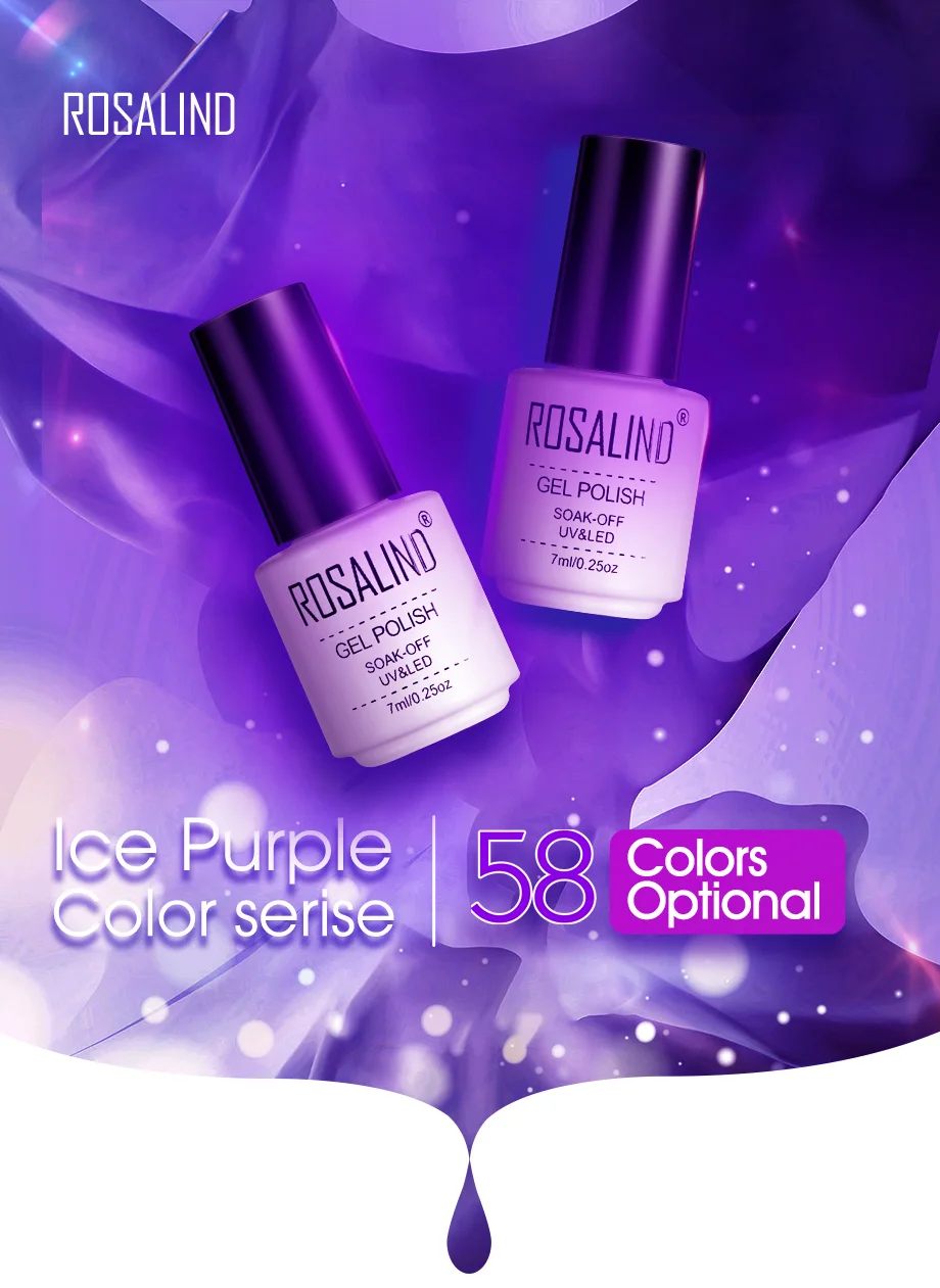Rosalind 7 мл чистый цвет серии s гель лак для ногтей лак для дизайна ногтей Выберите любой 01 из 58 цветов УФ и светодиодный светильник
