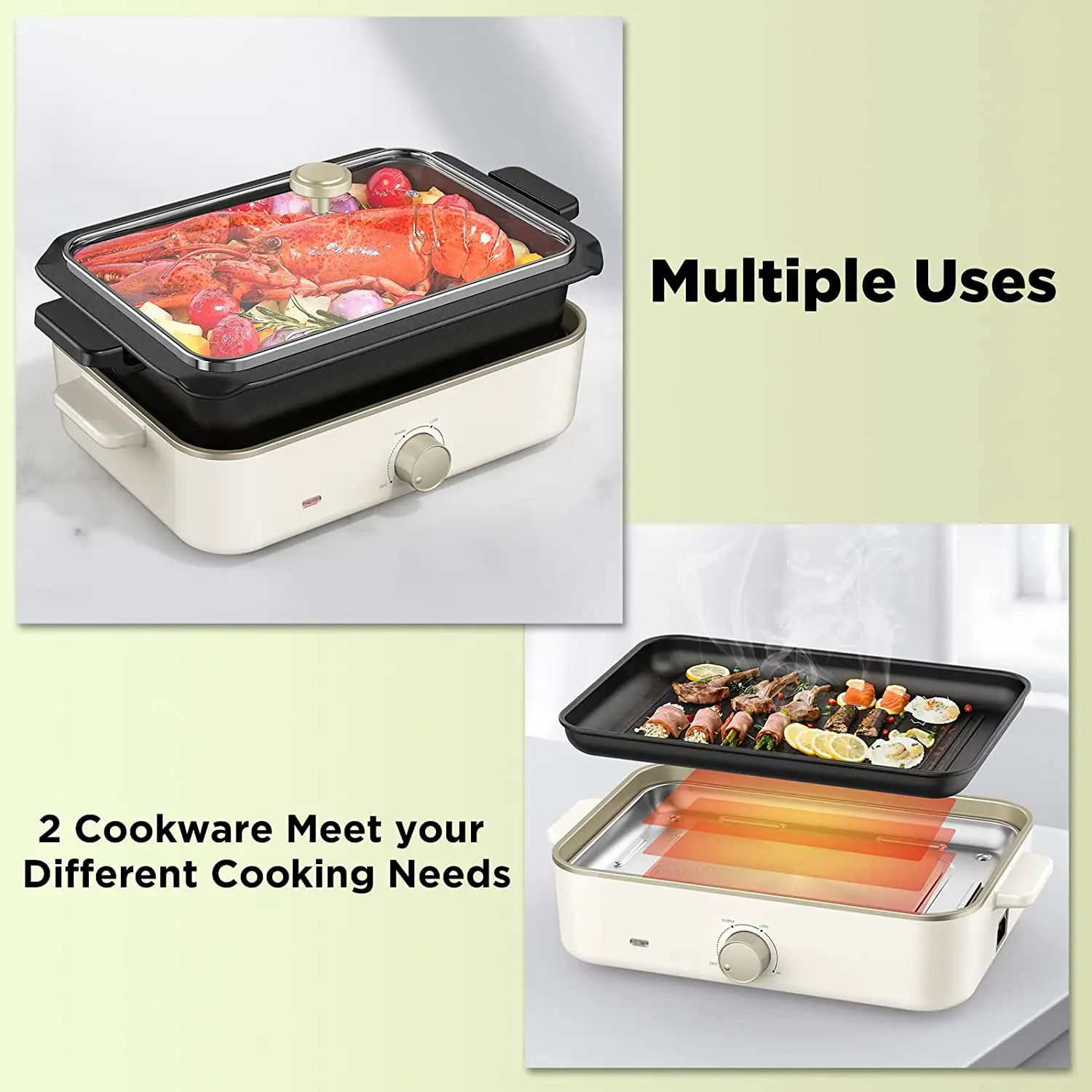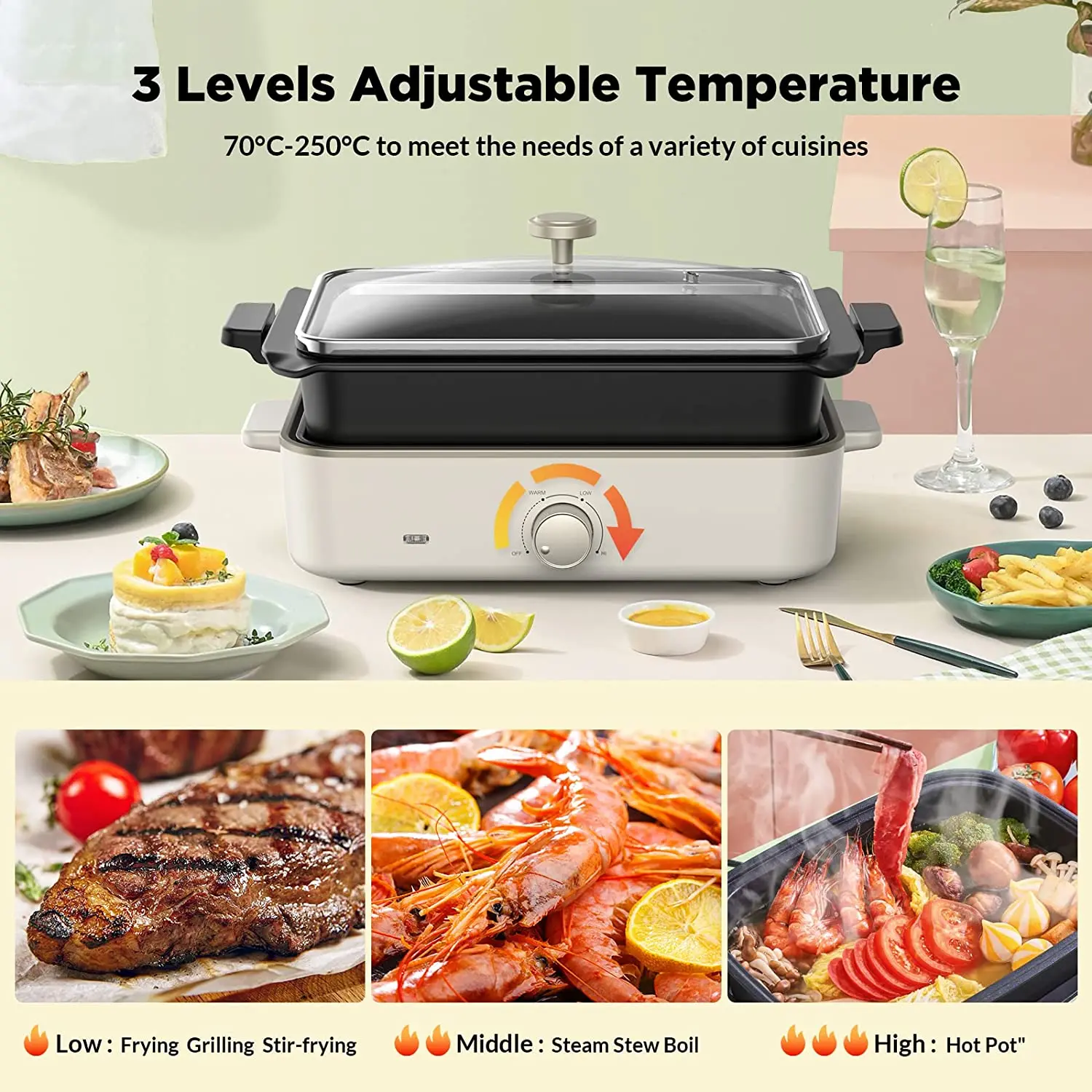 Многофункциональный один горшок = электрическая сковорода + стойка для жарки + лапша, идеально подходит для экономии в 3 раза больше места, может использоваться для приготовления стейков, баранины, курицы, Жареного Риса, макарон, каши, суп, яйца, блины, горшок для приготовления пищи и т. Д.