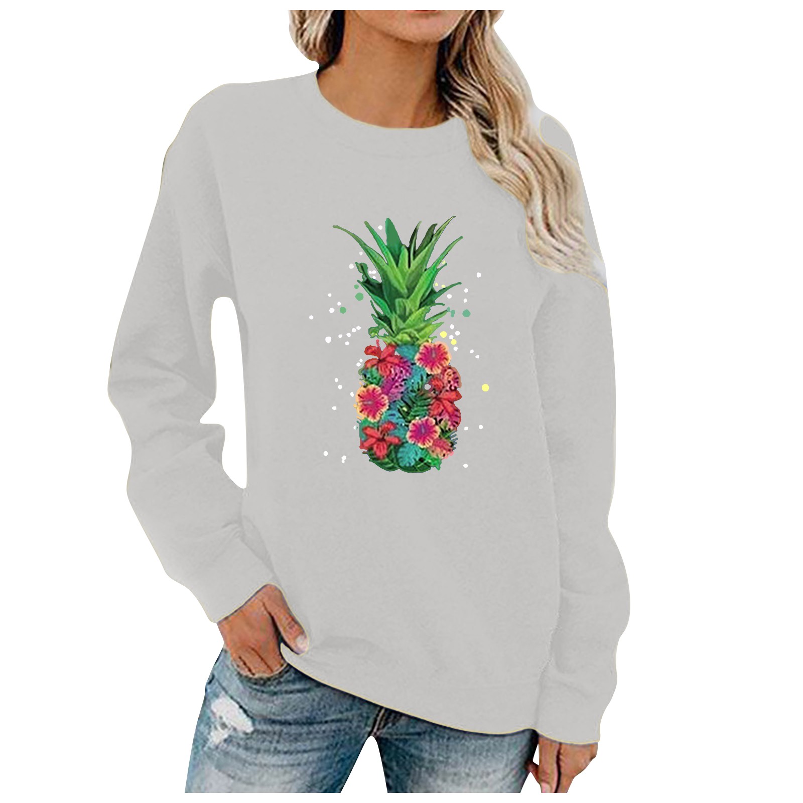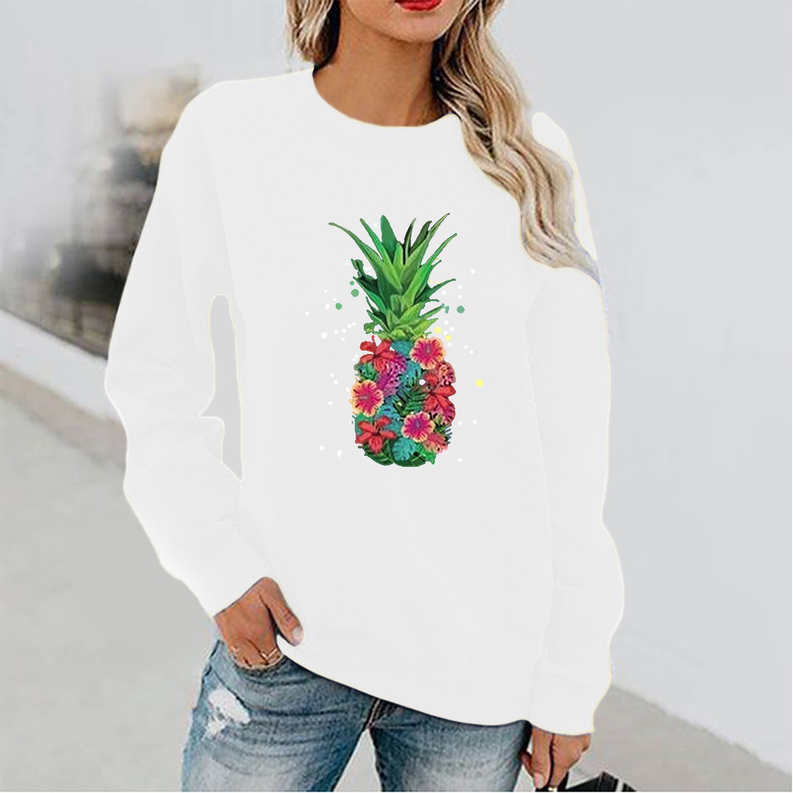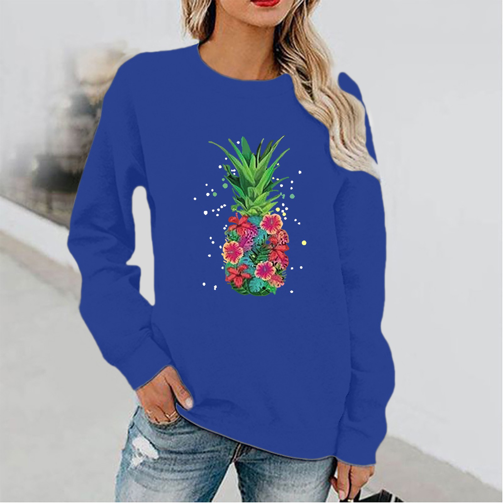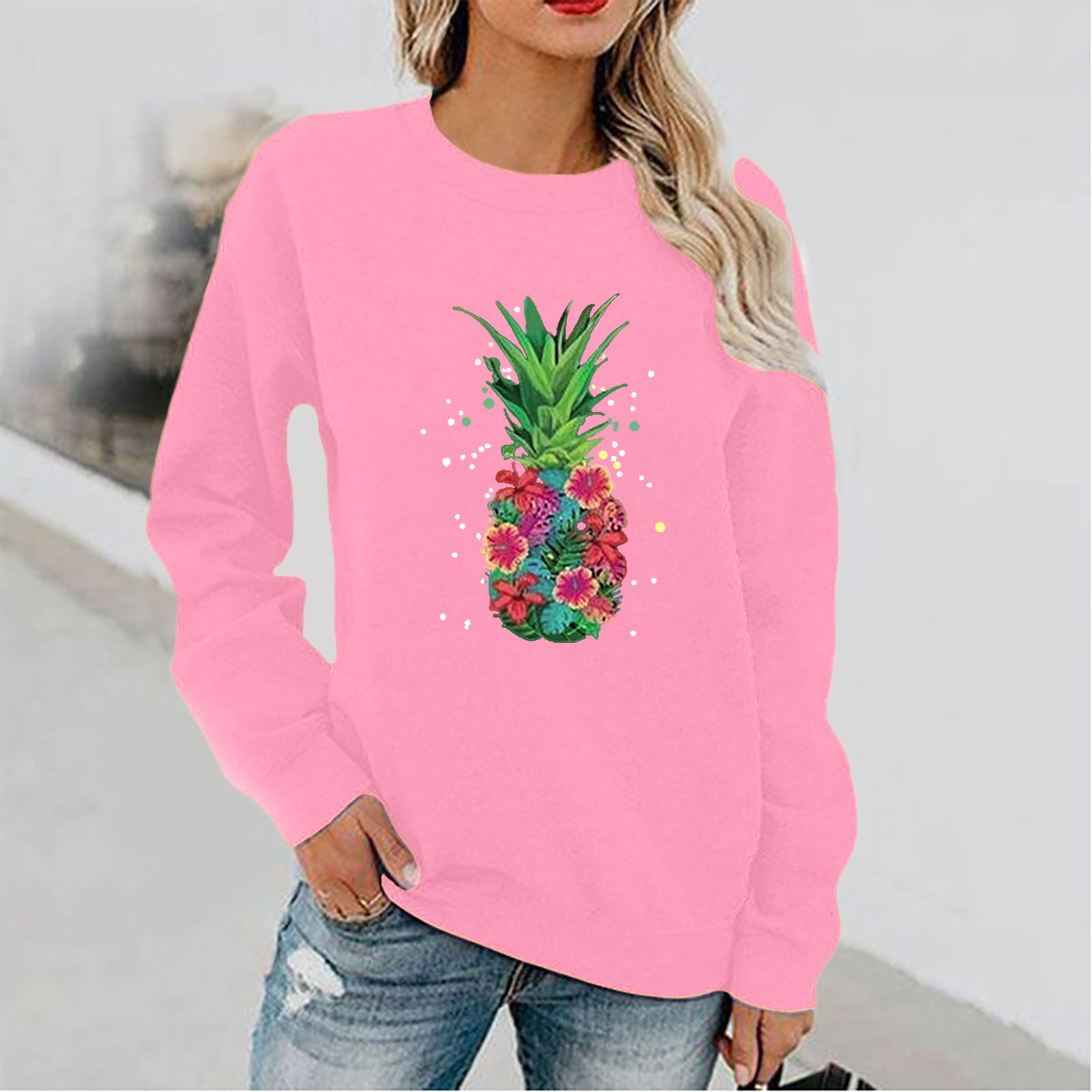 Женский Повседневный однотонный пуловер с круглым вырезом и длинным рукавом
