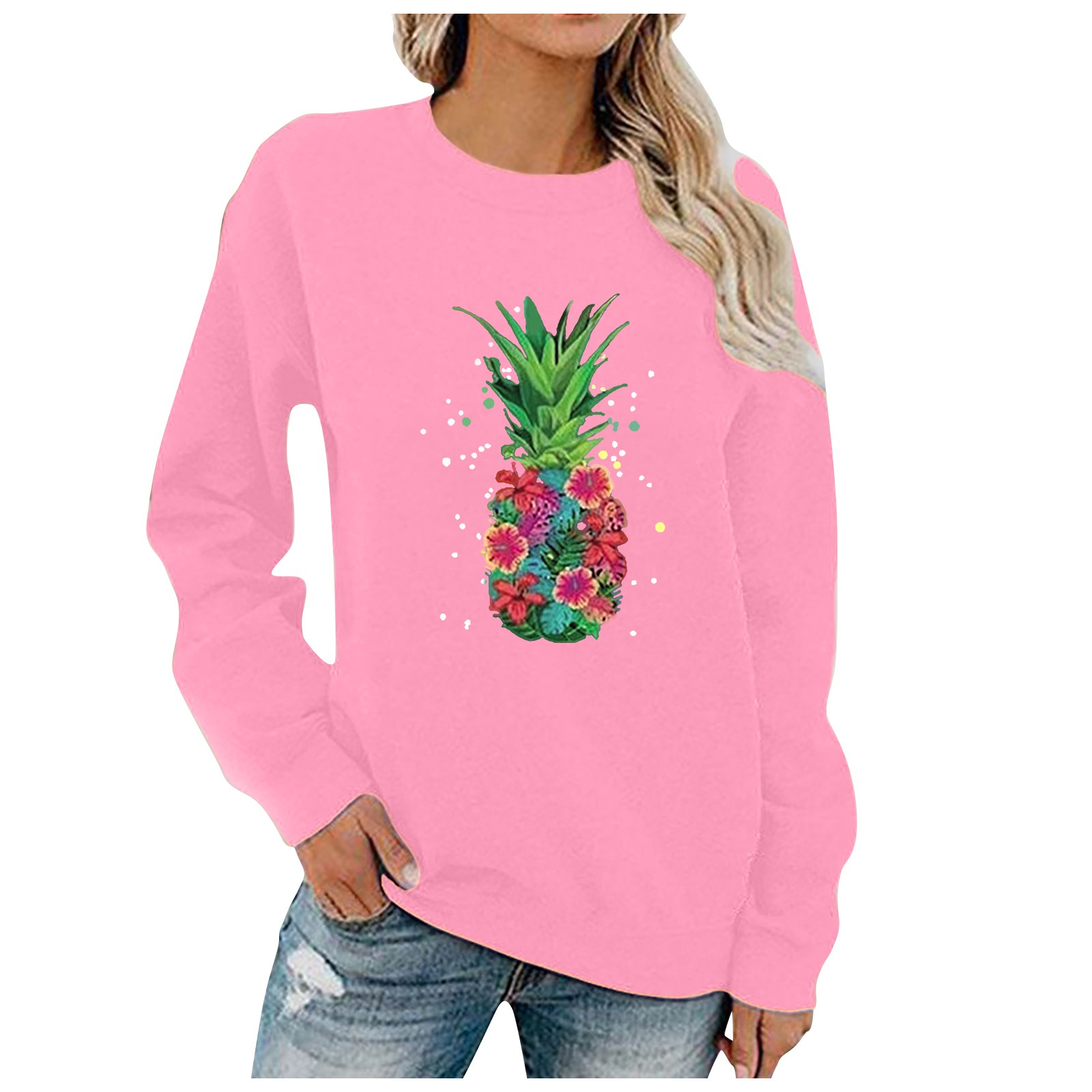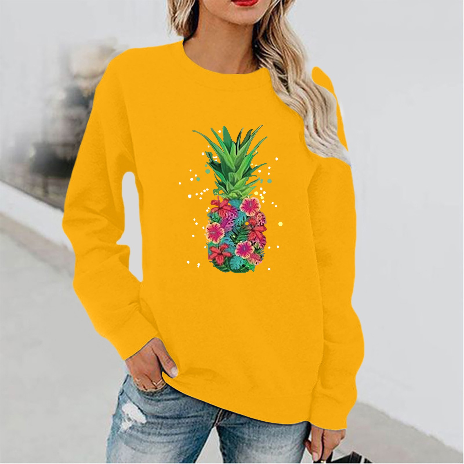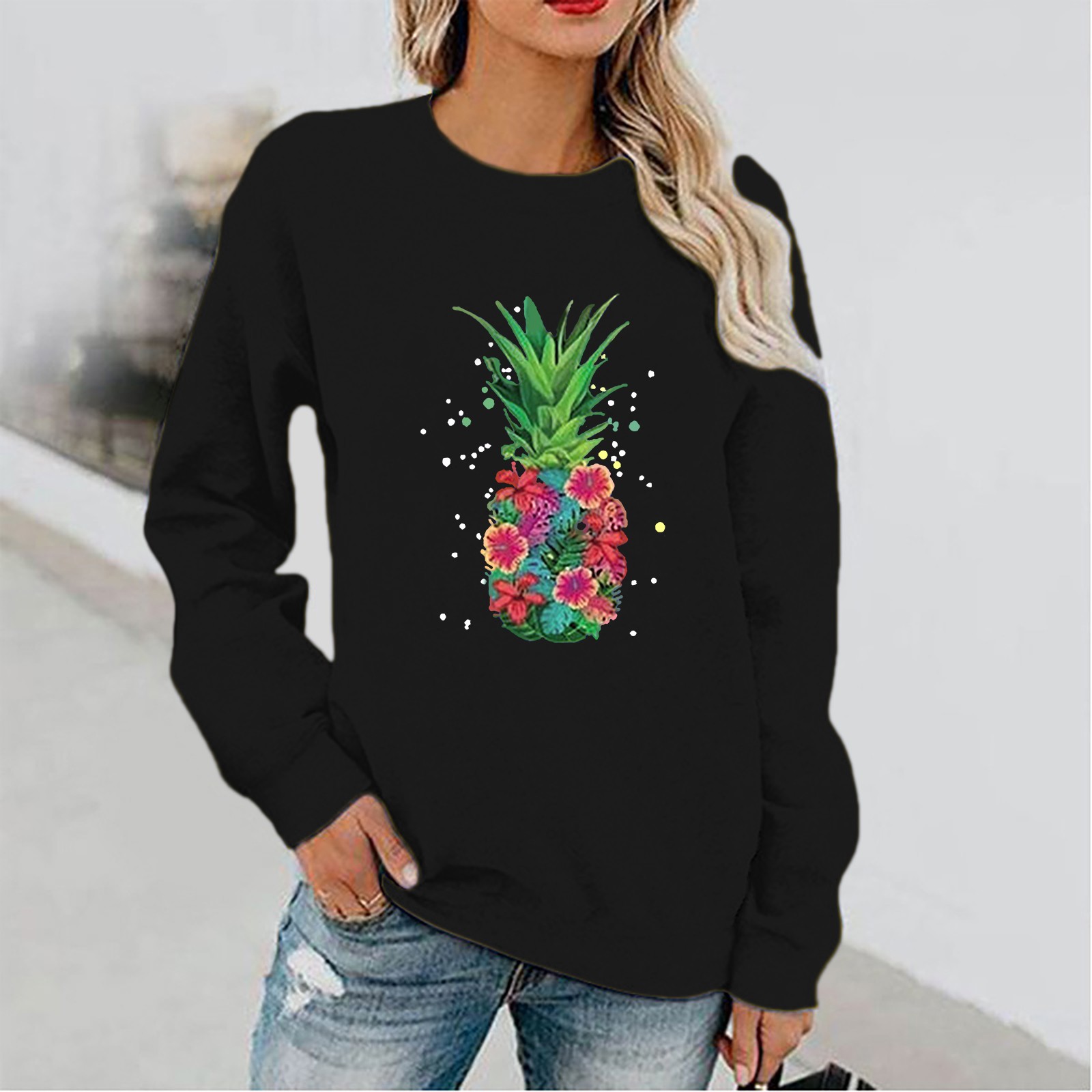 Женский Повседневный однотонный пуловер с круглым вырезом и длинным рукавом
