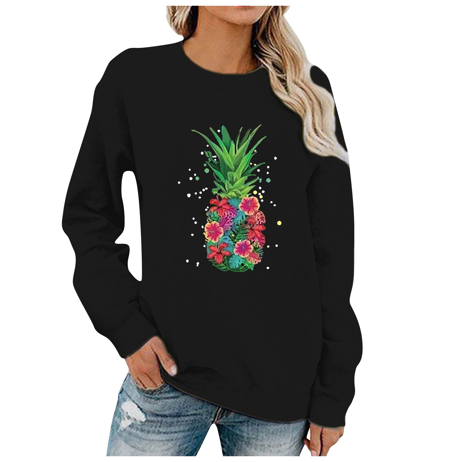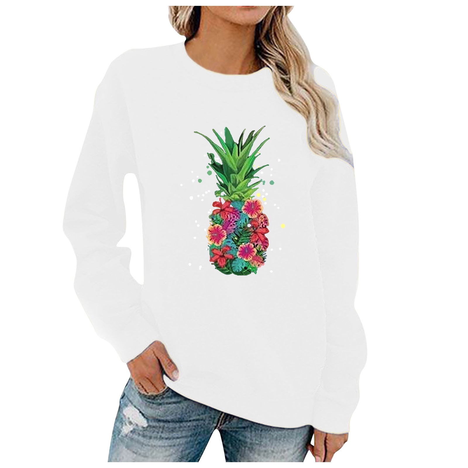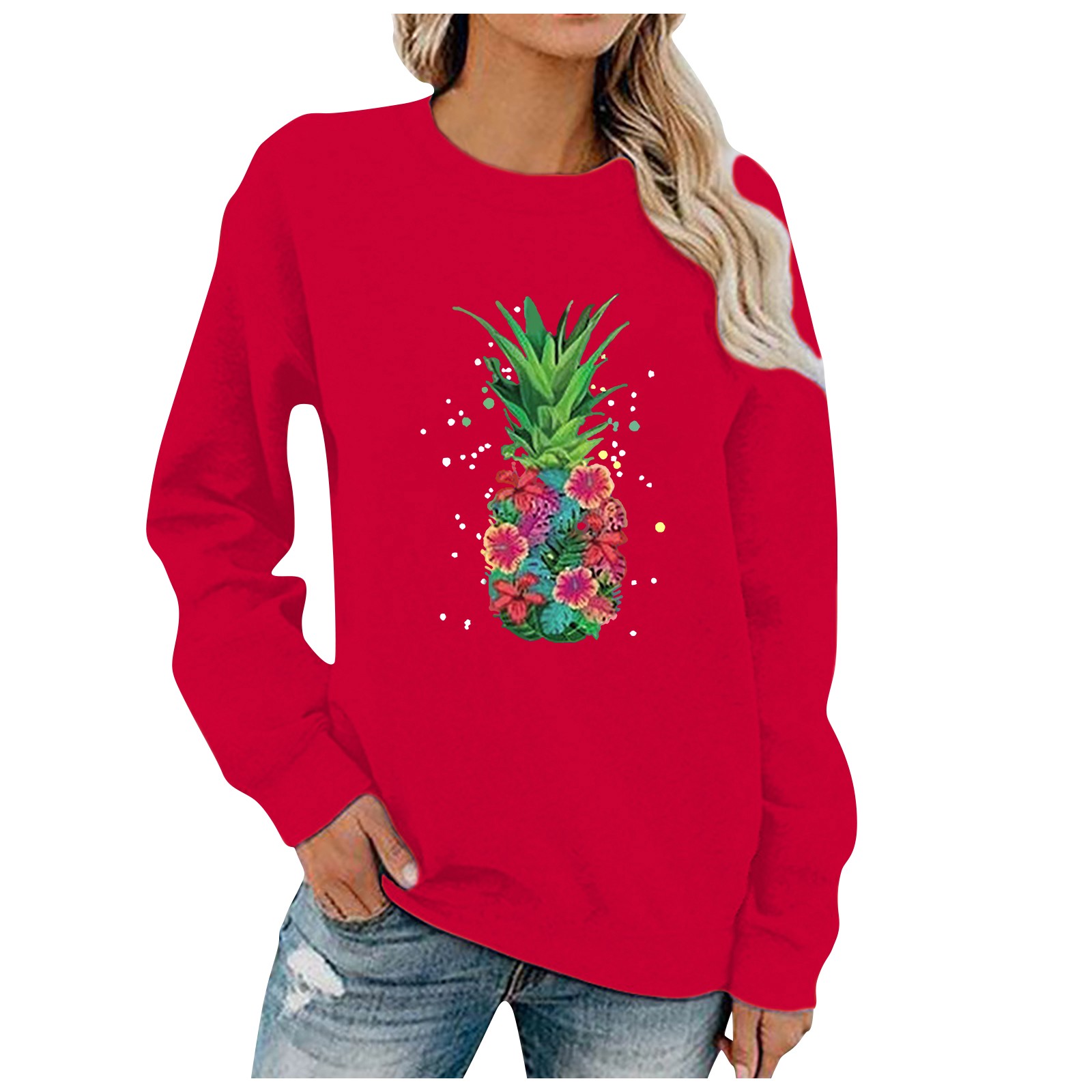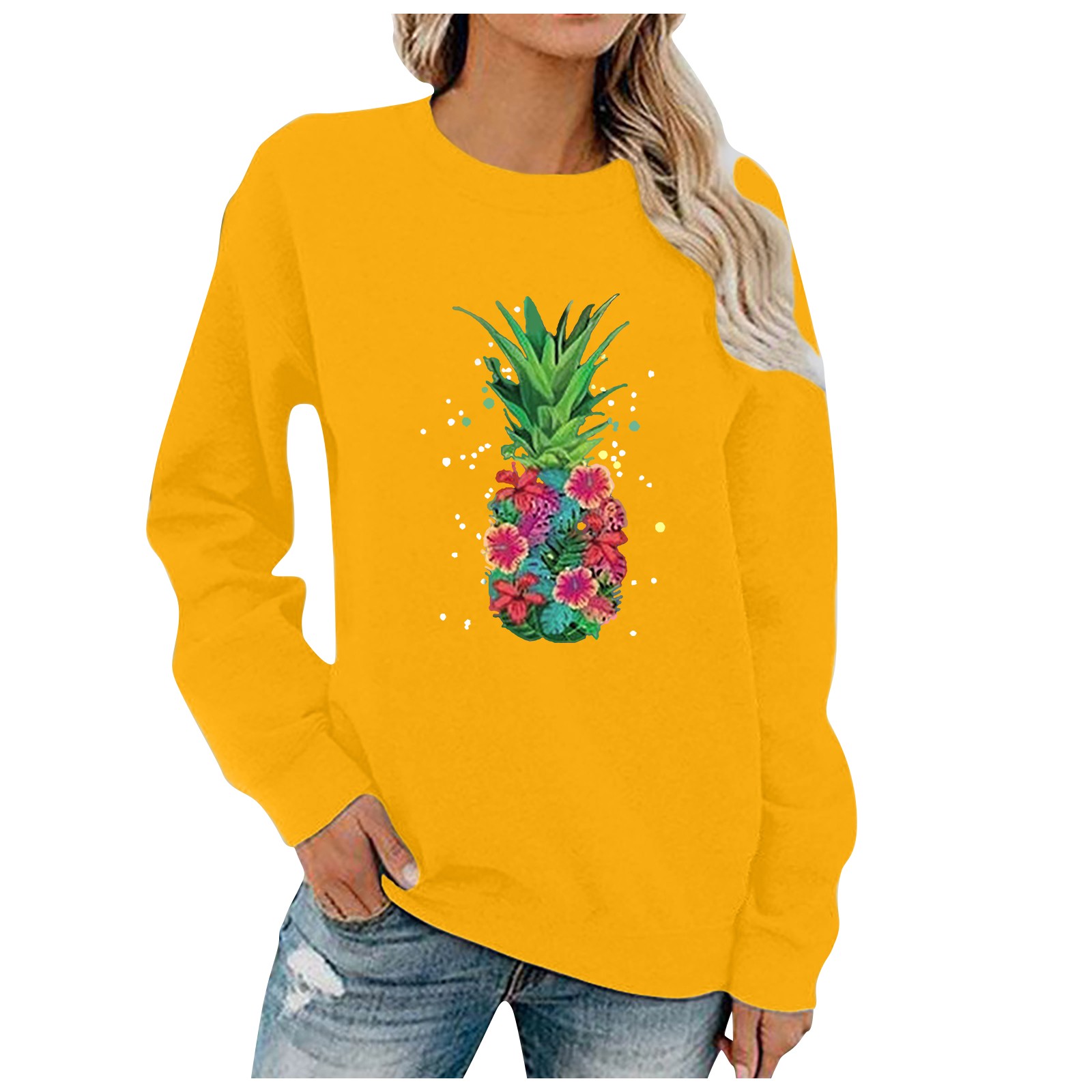 Женский Повседневный однотонный пуловер с круглым вырезом и длинным рукавом