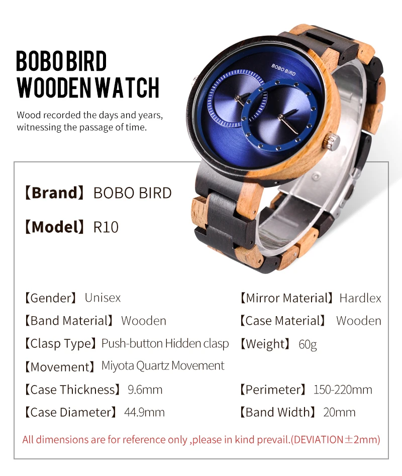 BOBO BIR Топ класс деревянные часы бренд, японский кварцевый механизм, 30 метров водонепроницаемый для повседневной жизни