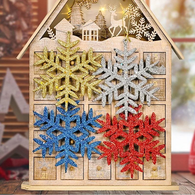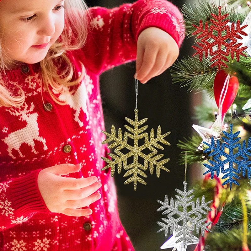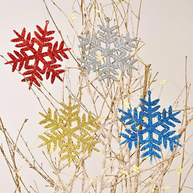 4pcs 11cm Plastic Gold Silver Glitter Powder Snowflake Xmas Ornaments Pendant Christmas Tree Decorative Hanging Snowflake