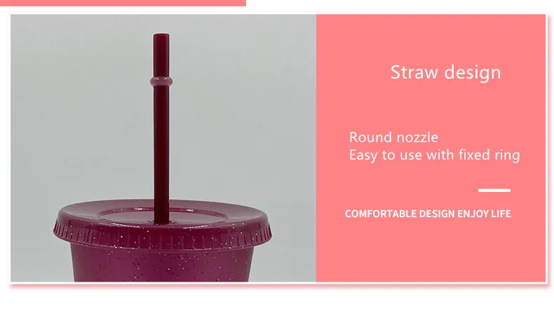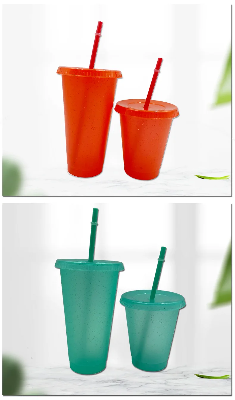 With Lid And Straw: Flash powder Shiny Reusable Plastic Tumbler with Lid and Straw Cup.
