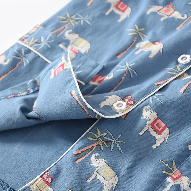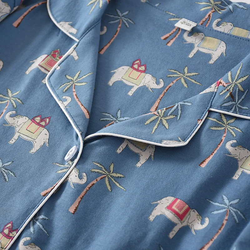 223 новые летние парные пижамы из 100% хлопка, комплект из двух предметов, тонкие шорты с короткими рукавами, Женский трикотажный комплект С Рисунком Слона для дома