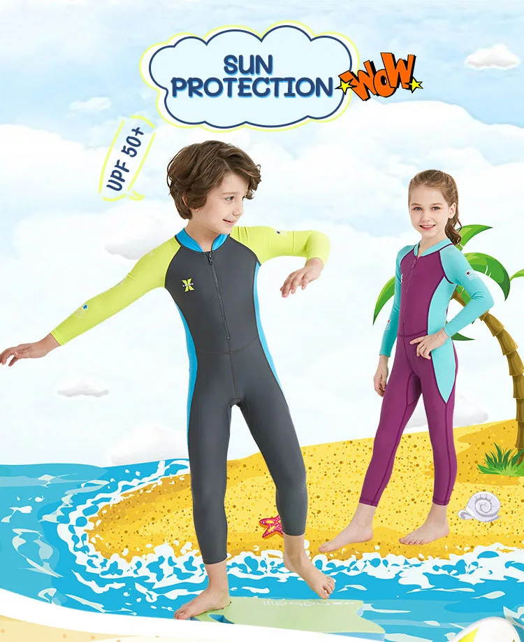Цельный Детский купальник, костюм для дайвинга с длинными рукавами, Детский Гидрокостюм с длинными рукавами, Быстросохнущий UPF 50 + защита от ультрафиолета, купальный костюм для серфинга
