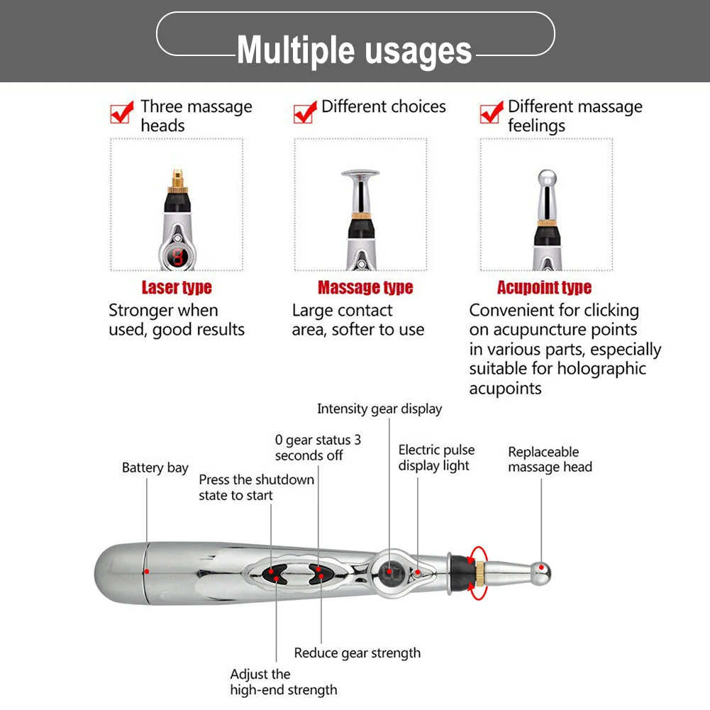 Электрическая импульсная ручка для акупунктурных меридианов, массажер, ручка для облегчения боли, набор инструментов, лазерная акупунктурная ручка, Массажная терапия, массажер для лица для расслабления тела