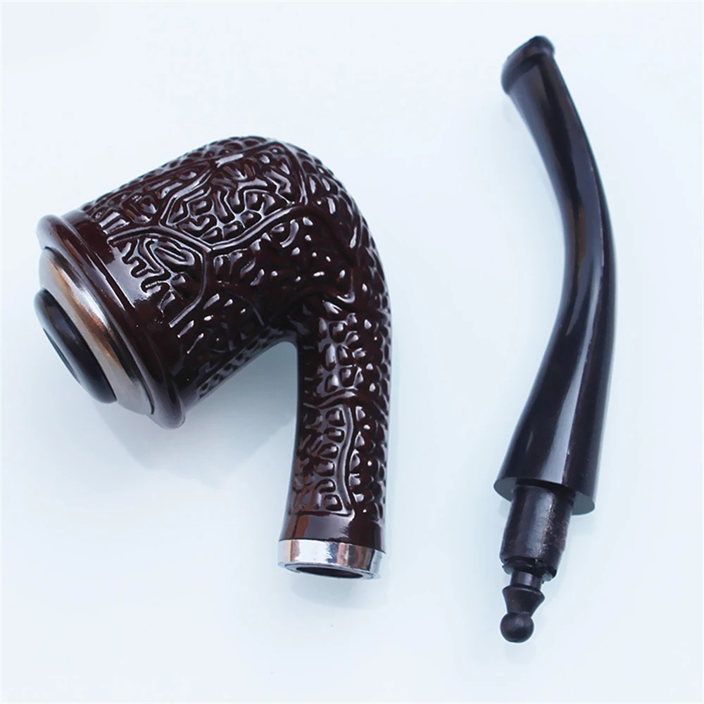 Double Purpose Cigarette Tobacco Pipe Resin Carved Bent Filter Pipe Hemp Bump Iron Pot Cigarette Holder Handmade Smoking Pipe