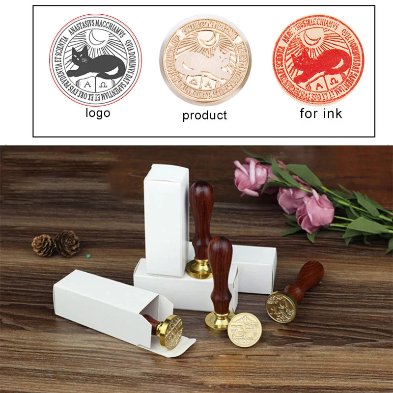 Индивидуальный металлический штамп с индивидуальным логотипом, чернильный штамп, изображение на заказ, несколько вариантов размеров, металлическая головка, деревянная ручка