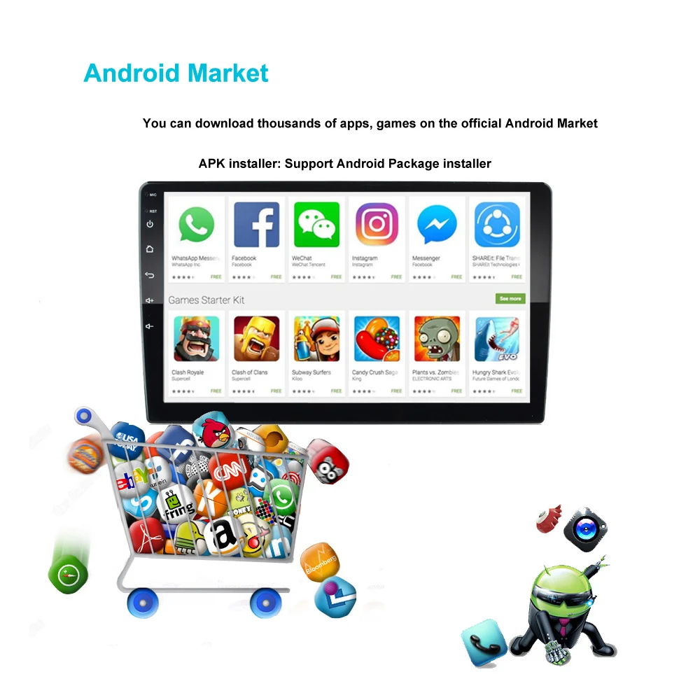 9" Android Car radio 2 Din Multimedia Player GPS Navigation Auto Stereo WIFI Bluetooth Video Player With Mirror link Rearview Camera and External microphone