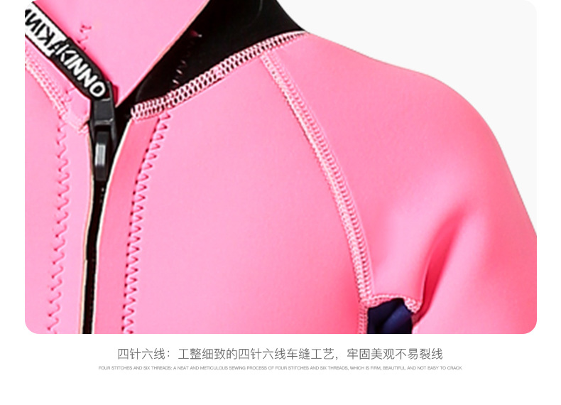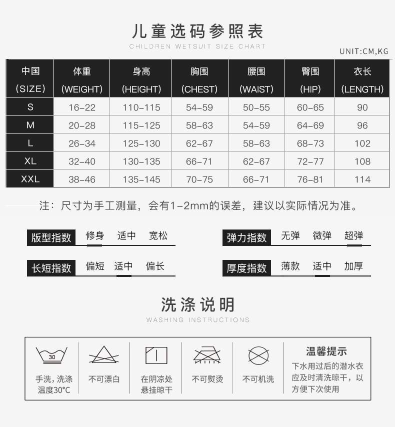 Back or Front zip allows the child easy on and off; excellent elasticity and adjustable velcro collar; cuff is light shell edge, perfect to ensure comfortable of wetsuits for kids