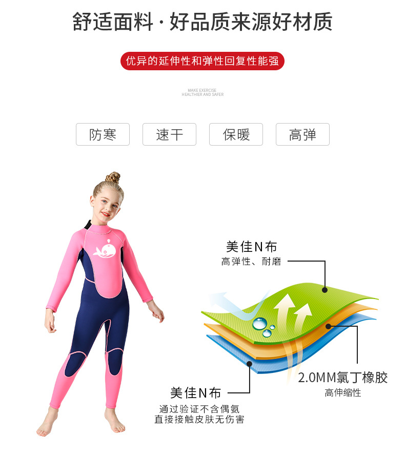 2.5mm premium foam neoprene makes kids/youth wetsuit soft and comfortable, helps to keep child's body warm indoor or outdoor effectively