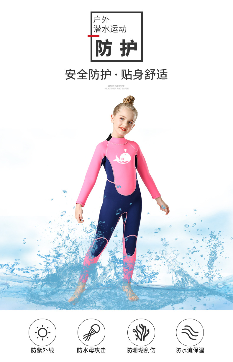 2.5MM Neoprene Wetsuit Kids Gilrs Scuba diving suit Sun-proof Surfing snorkeling girls winter Long sleeve thermal Swimsuit