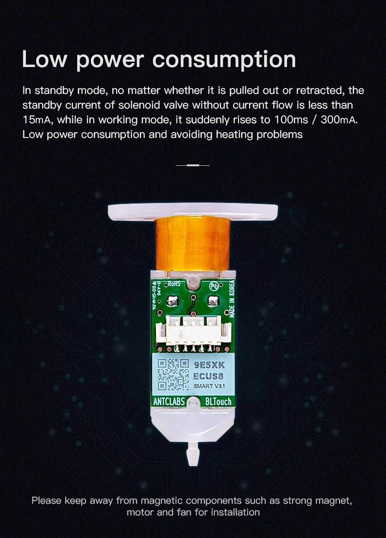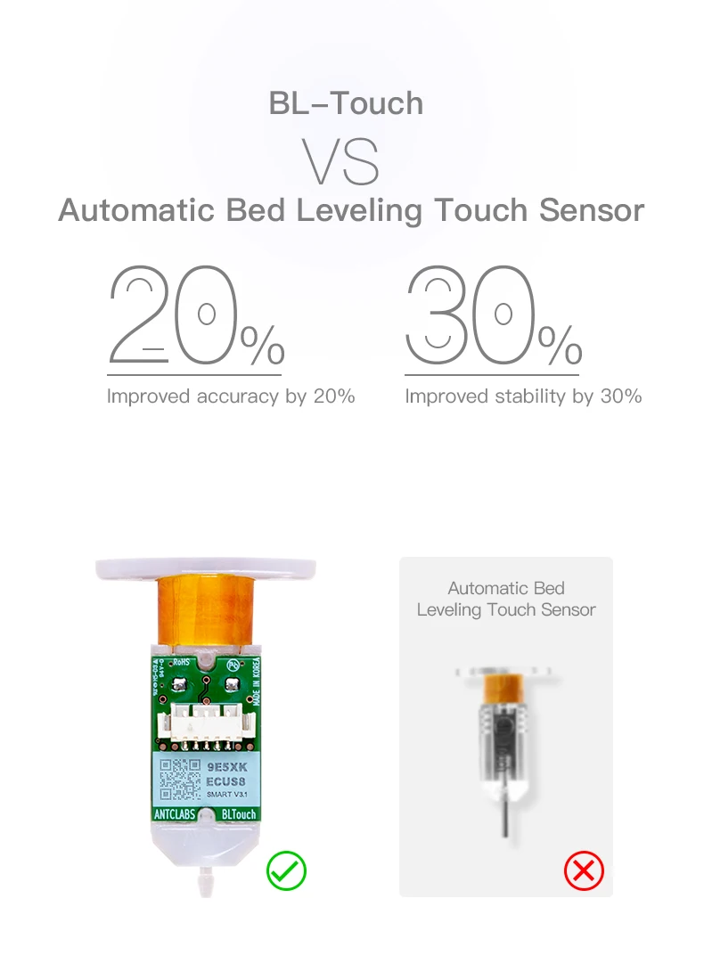 BL-Touch с высокой точностью и низким энергопотреблением может автоматически обнаруживать выравнивание и вывод точного deta. Стандартное отклонение составляет всего 0,005 мм, что делает выравнивание более удобным