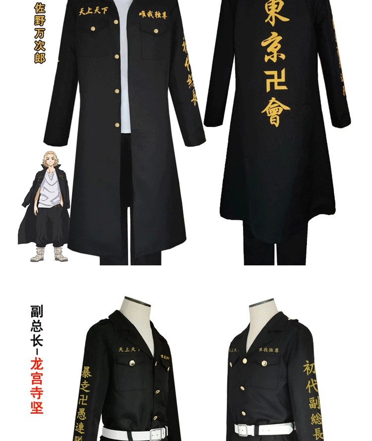 Tokyo Revengers Mikey Sano Manjiro Cosplay Costume tokyo avengers Tokyo Manji Gang Uniform Black Cloak Halloween Anime clothes