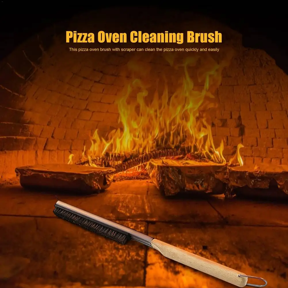 Длинная ручка из нержавеющей стали для чистки пиццы, щетка для очистки камня, деревянная ручка, набор аксессуаров для кухонной печи, портативный инструмент для выпечки барбекю