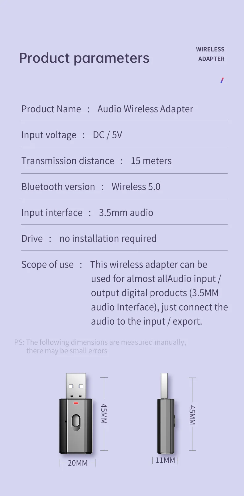 5. Широкая Совместимость: с помощью прилагаемого 3,5 мм кабель с данным приемником передатчик адаптер может широко использоваться на вашем автомобиле, компьютера, ноутбука, домашней стереосистеме, бумажное полотенце, кабель для наушников, смартфон, Mp3 проигрыватель компакт-дисков, И т. д.