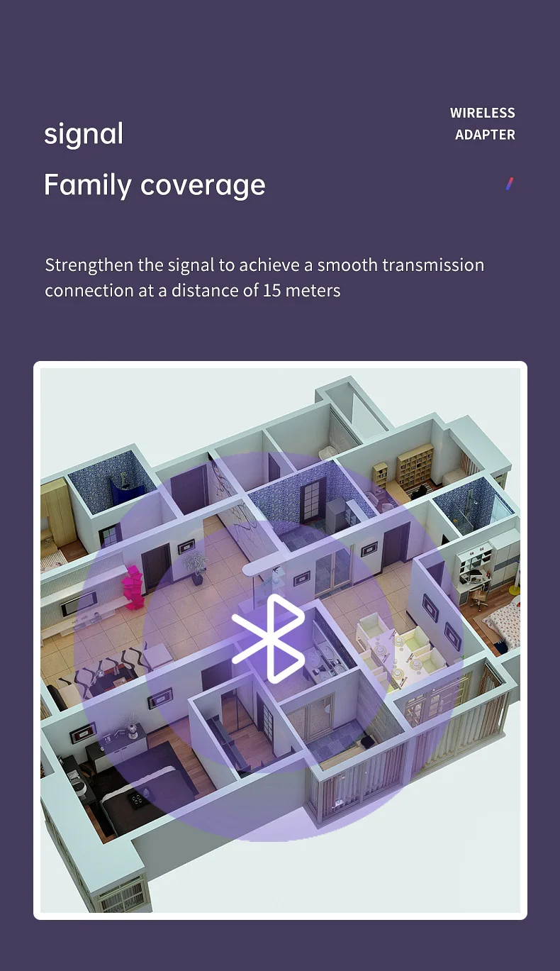 6. Рабочий диапазон: до 15 м (без каких-либо блокирующих объектов)