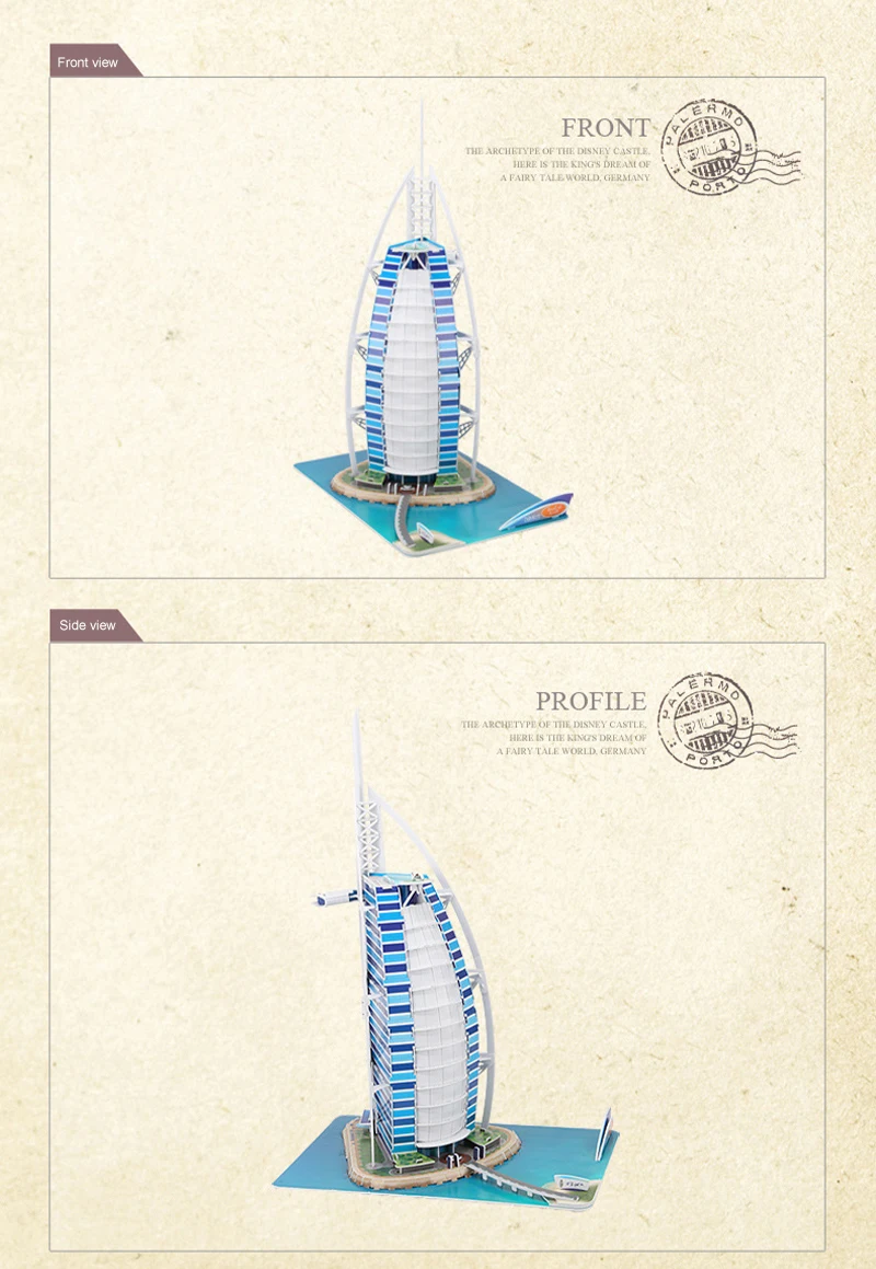 3D головоломка для детей мировая архитектура для Burj Hotel Дубай Дети DIY бумажный архитектурный паззл Образовательные Подарки