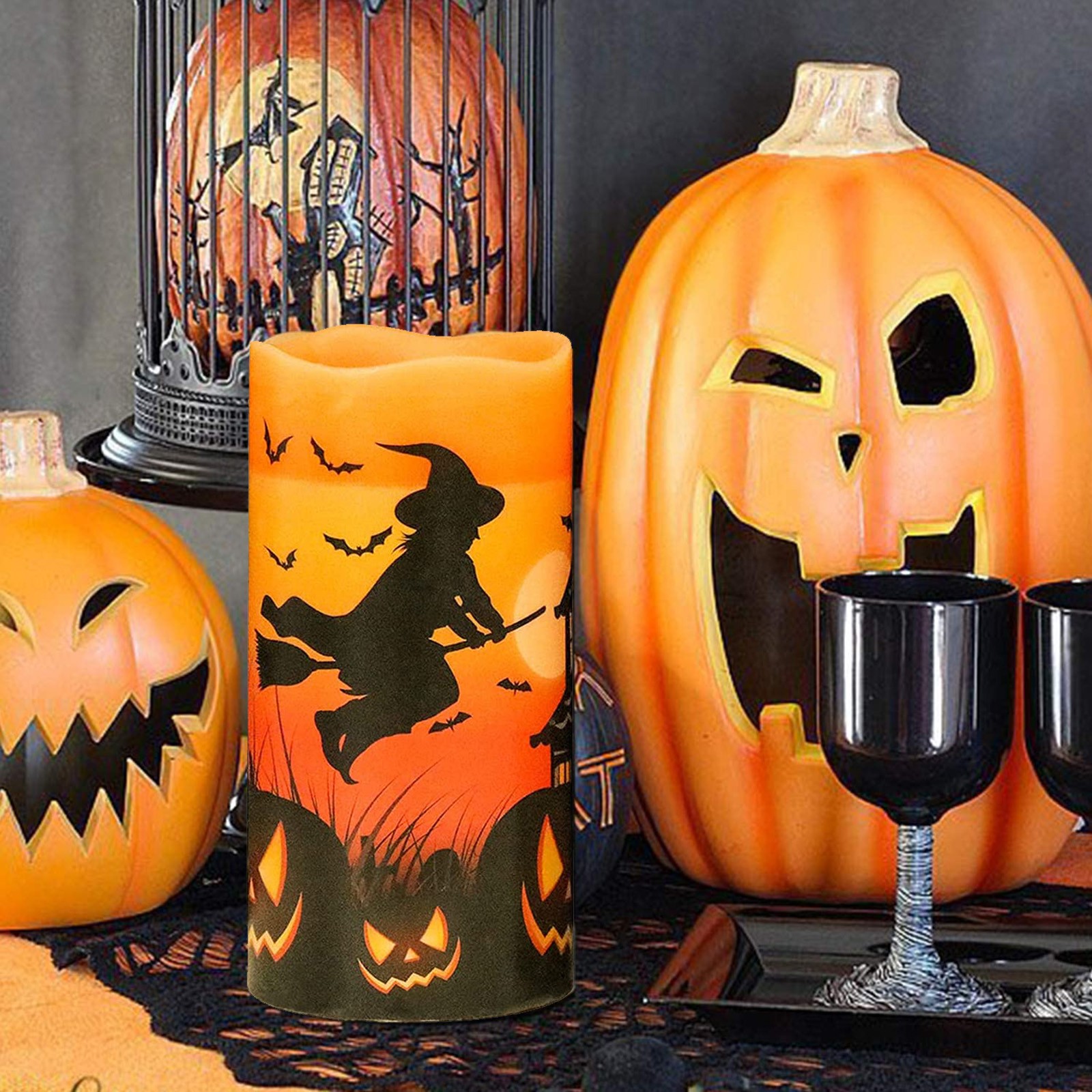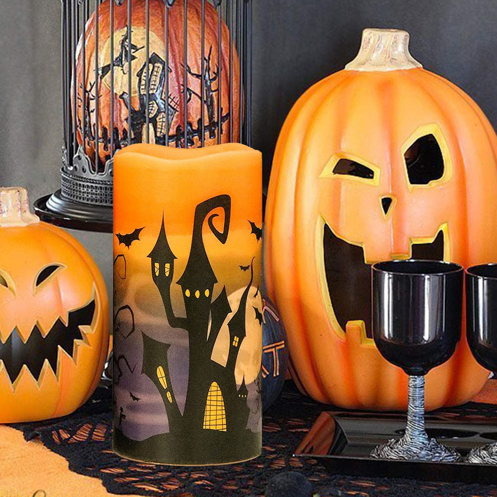 Хэллоуин мерцающие беспламенные Свечи на батарейках оранжевые светодиодные свечи